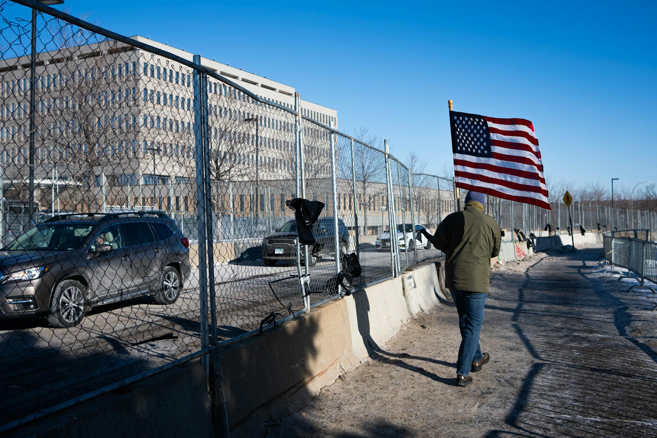 At the federal Whipple Building near Fort Snelling, the epicenter of ICE activity in Minnesota, about a dozen regular demonstrators brandished American flags and raised middle fingers to a steady trickle of heavily tinted vehicles entering and leaving from two main gates.