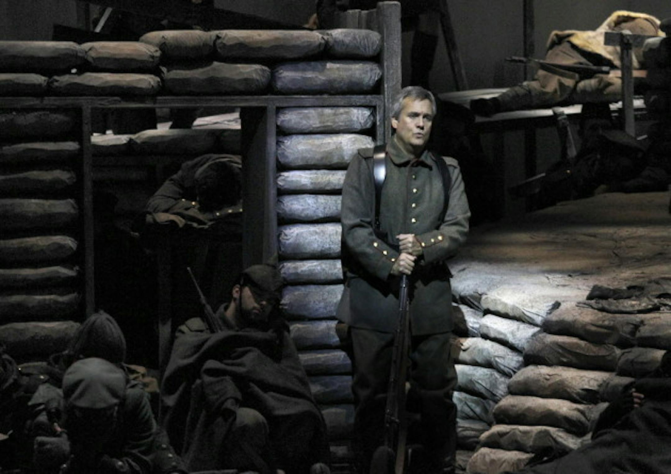Burden saw a doctor, received medication and was cleared to sing at the opening, but as the afternoon progressed it became clear his voice would not be up for the job. By the time he arrived at the theater a plan B was hatched. Tenor Brad Benoit, who sings in the opera's soldier-chorus, was drafted to sing the part of Sprink.
