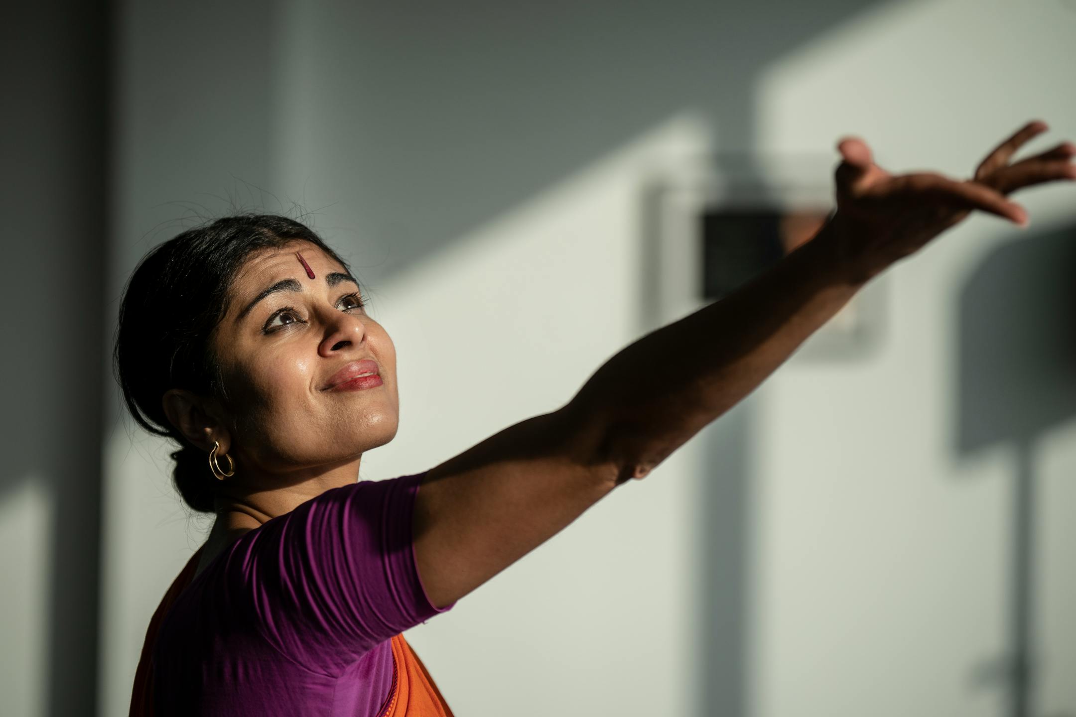 Ramaswamy drew on the tradition of Bharatanatyam, the classical dance form from South India, and brought together a team of both dancers and choreographers for the work. Working with her mother and sister — Ranee and Aparna Ramaswamy — as well as choreographers Berit Ahlgren, Alanna Morris and Joseph Tran, the piece sought points of connection with other dance styles.