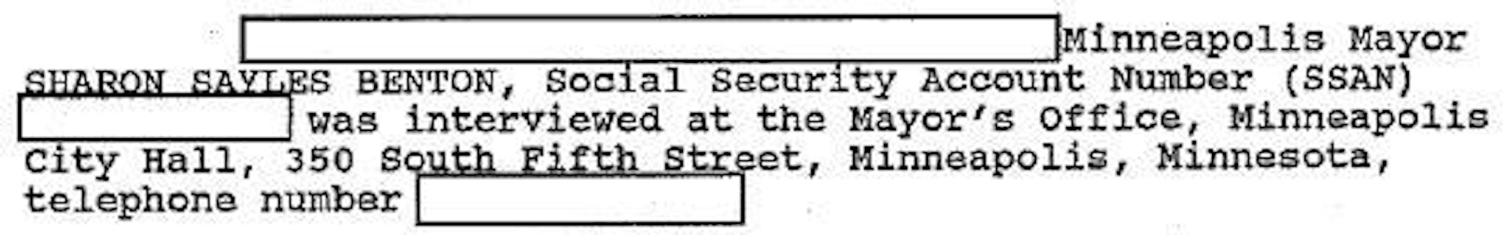 Among other revelations in the FBI files, the story cited a quote about City Hall secrets from then-mayor Sharon Sayles Belton. But it actually came from her aide, Mary Pattock, now in media relations at the University of Minnesota.