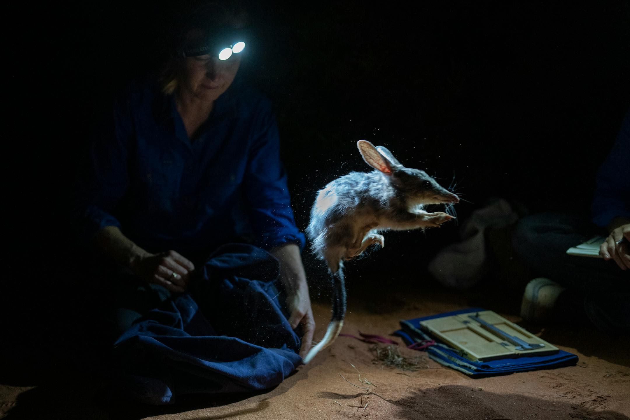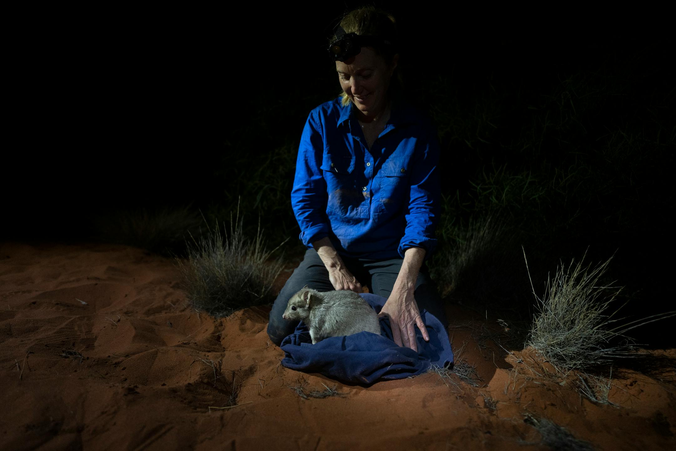 When Moseby, who is also a researcher at the University of New South Wales, pulled up to the Arid Recovery office a few minutes later, she made her way to a small outbuilding to check on the shooter’s progress. A line of red droplets led down the stone path. “Fresh blood trail’s a good sign,” she said, before pushing open the door.