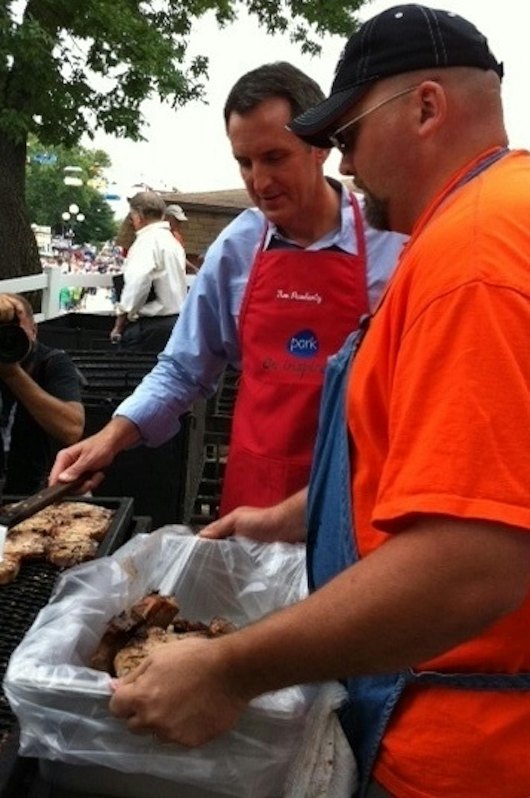 At one point, as he was flipping pork burgers, the governor asked a reporter how the they looked. The reporter said they looked done, then asked if he would be done if he doesn't do well on Saturday.