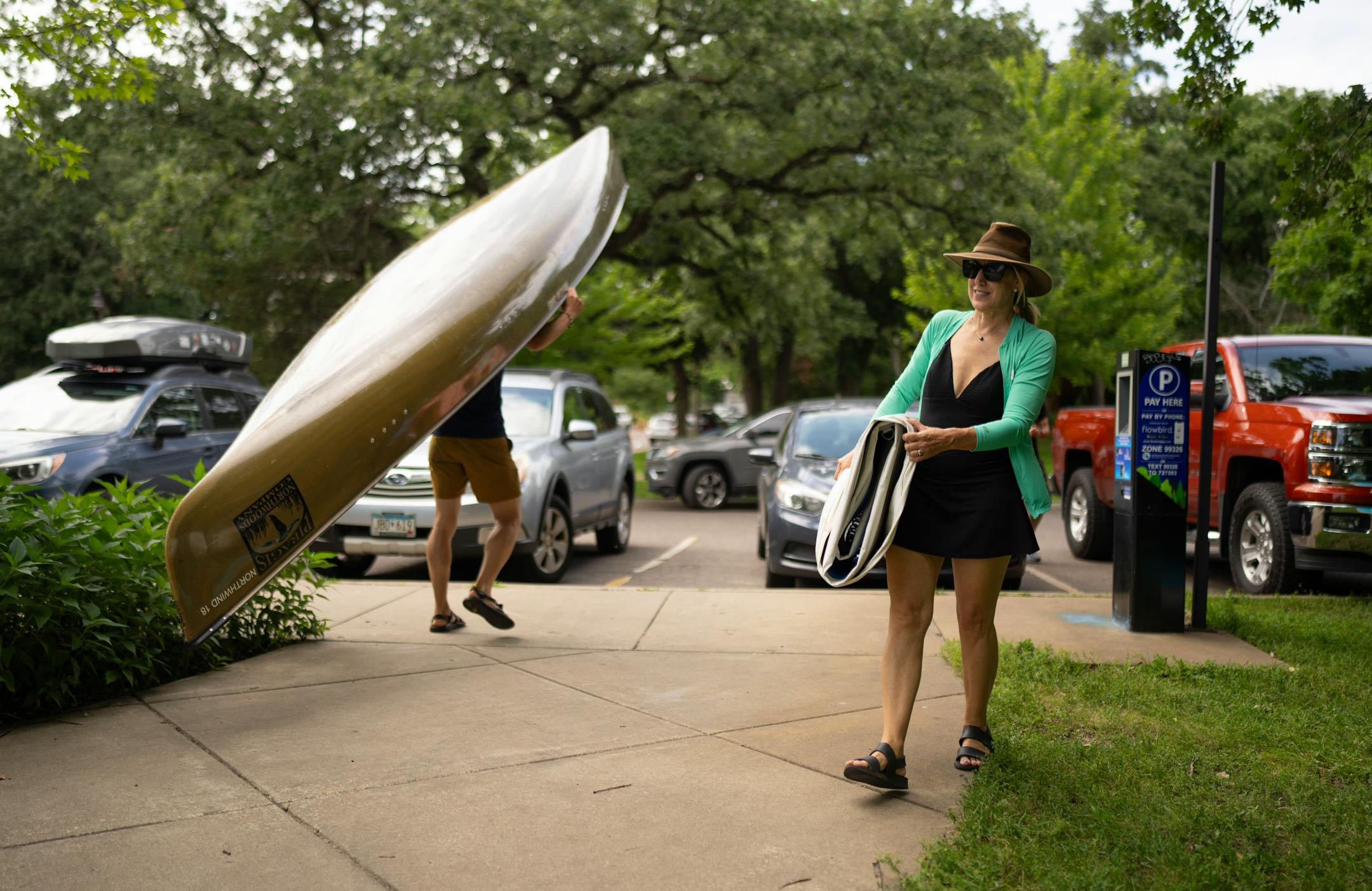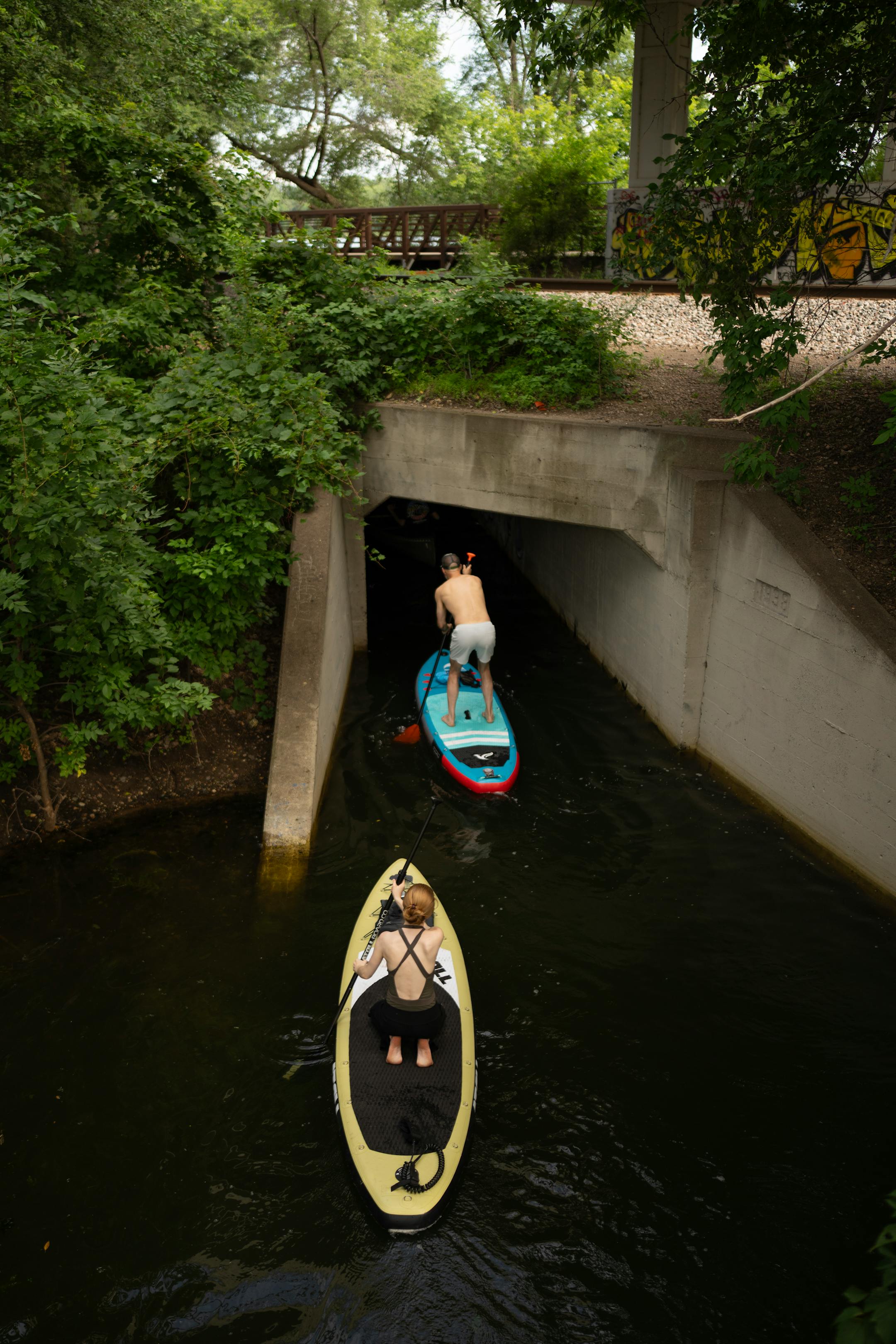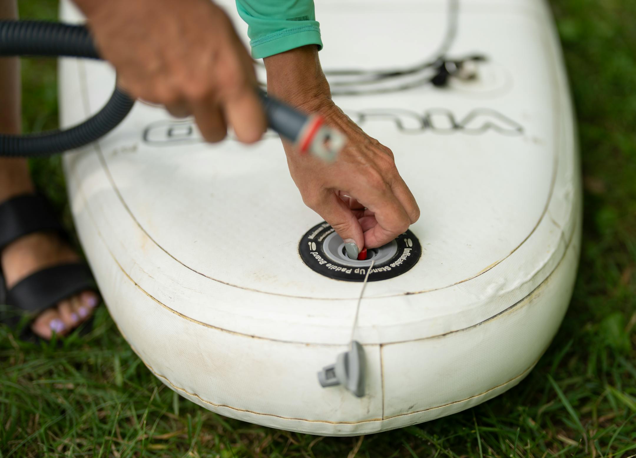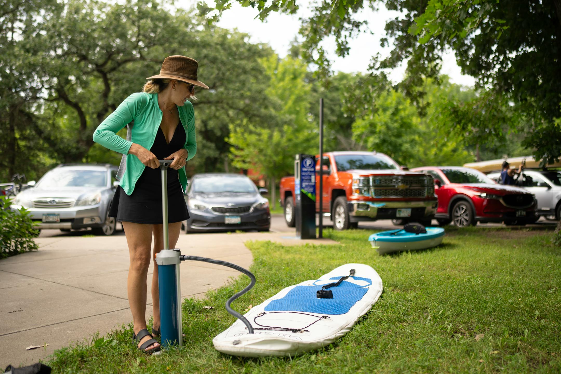 Within minutes after spreading it out and attaching an air pump, a rigid paddleboard sprang to life near the bustling Minneapolis lake.
