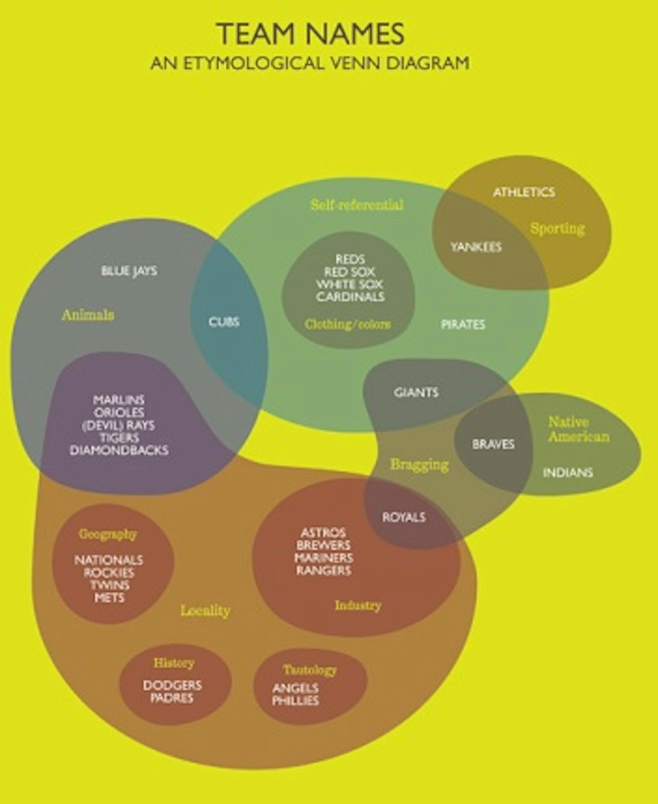 In the Etymological Venn Diagram of Baseball Team Names, the Twins are identified with "geography"