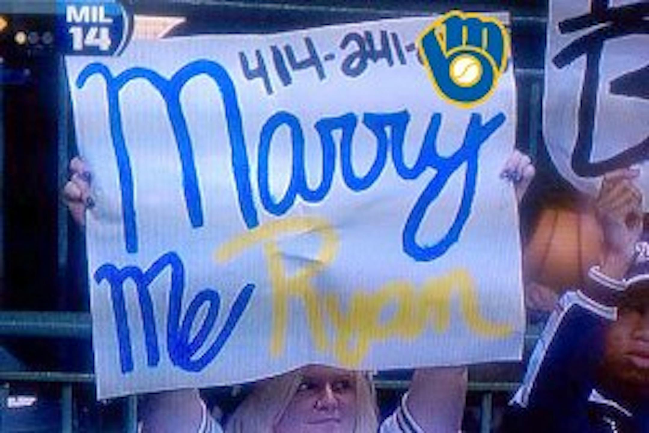 But who knew one woman would try to separate herself from the posterboard-toting pack at Miller Park by printing her cell phone number above her suggestion? And yet that actually happened on Friday night as the fräulein above made sure to place all 10 of her digits on her very earnest offer.