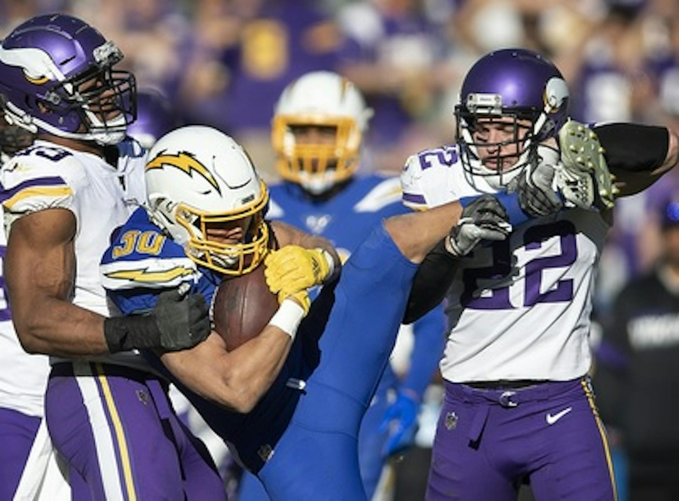 This season, as Hunter puts himself in the NFL Defensive Player of the Year conversation with his 13 1/2 sacks, he's continued to close in on Patterson's vision of what he can be as a run defender. On a day where the Vikings recorded seven takeaways in a game for the first time in 24 years, Hunter started things off with the kind of play we've seen him make with increasing frequency this year: He shed wide receiver Keenan Allen's block, ranged to his left to catch up to Melvin Gordon and pried the ball loose after Mike Hughes' initial hit. It was the first of Hunter's two forced fumbles on a day where he also recovered one and posted a sack, and it underscored what a complete player he's become on the defensive line.