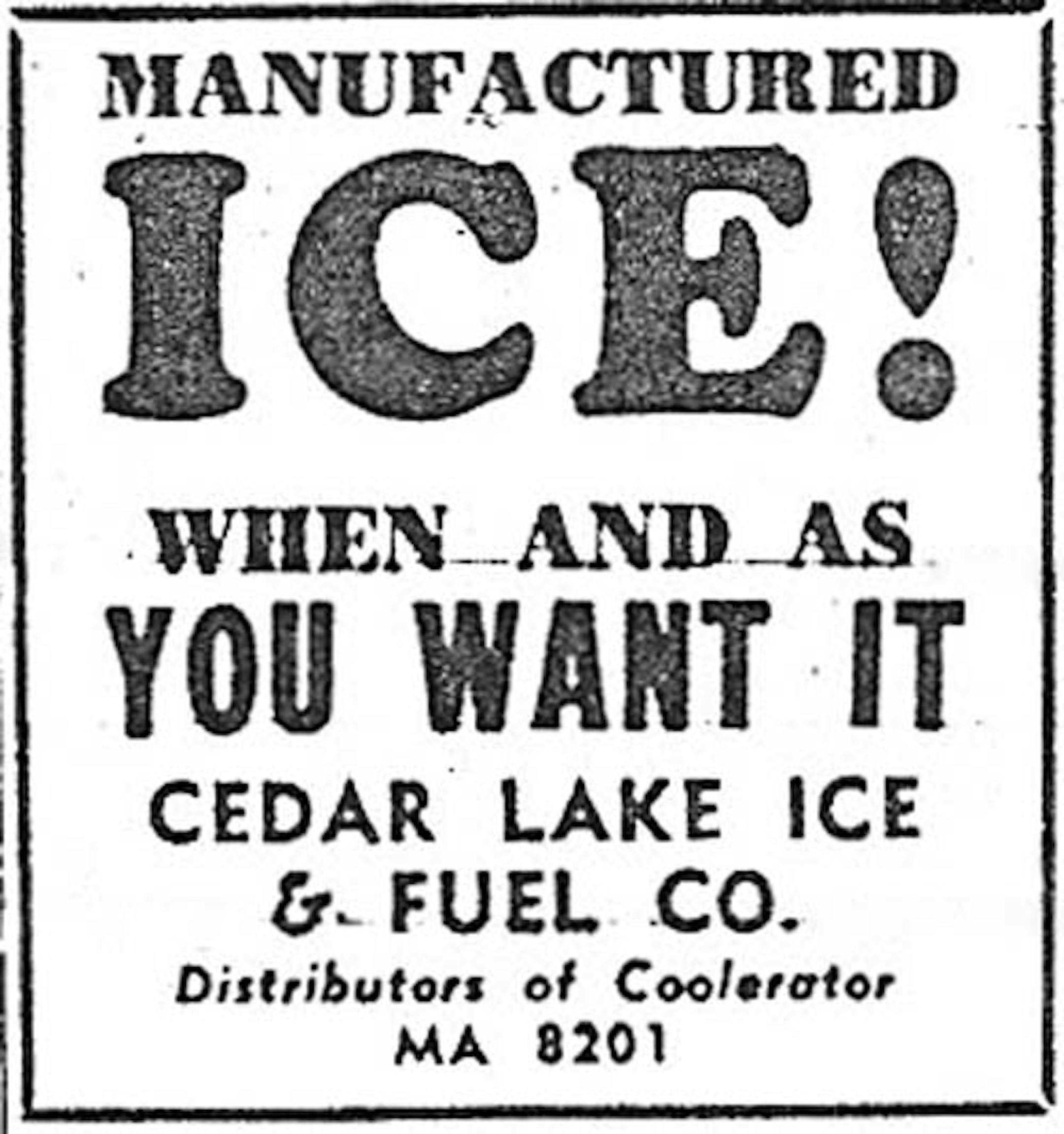 The ad was below a news story that just happened to be about . . . the Cedar Lake Ice company.