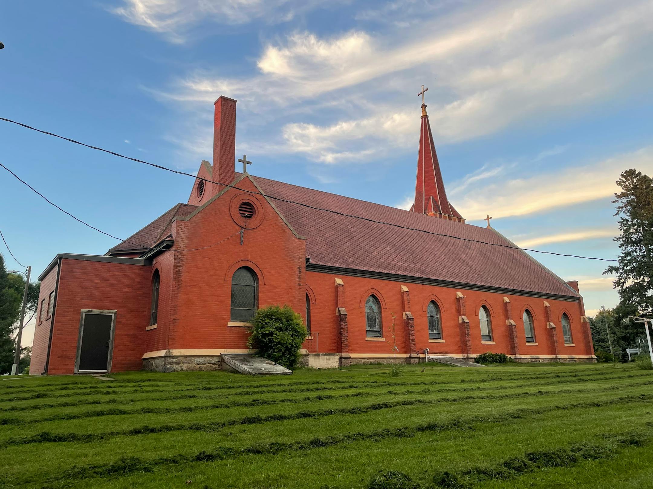 For this town with fewer than 100 residents, the church casts a monumental shadow. Its entry in the National Register of Historic Places notes that the red brick building is “unusually large for a town like De Graff.” The Gothic Revival church could hold 350, and the cross at the top of the 3½-story spire towers over the surrounding cornfields.