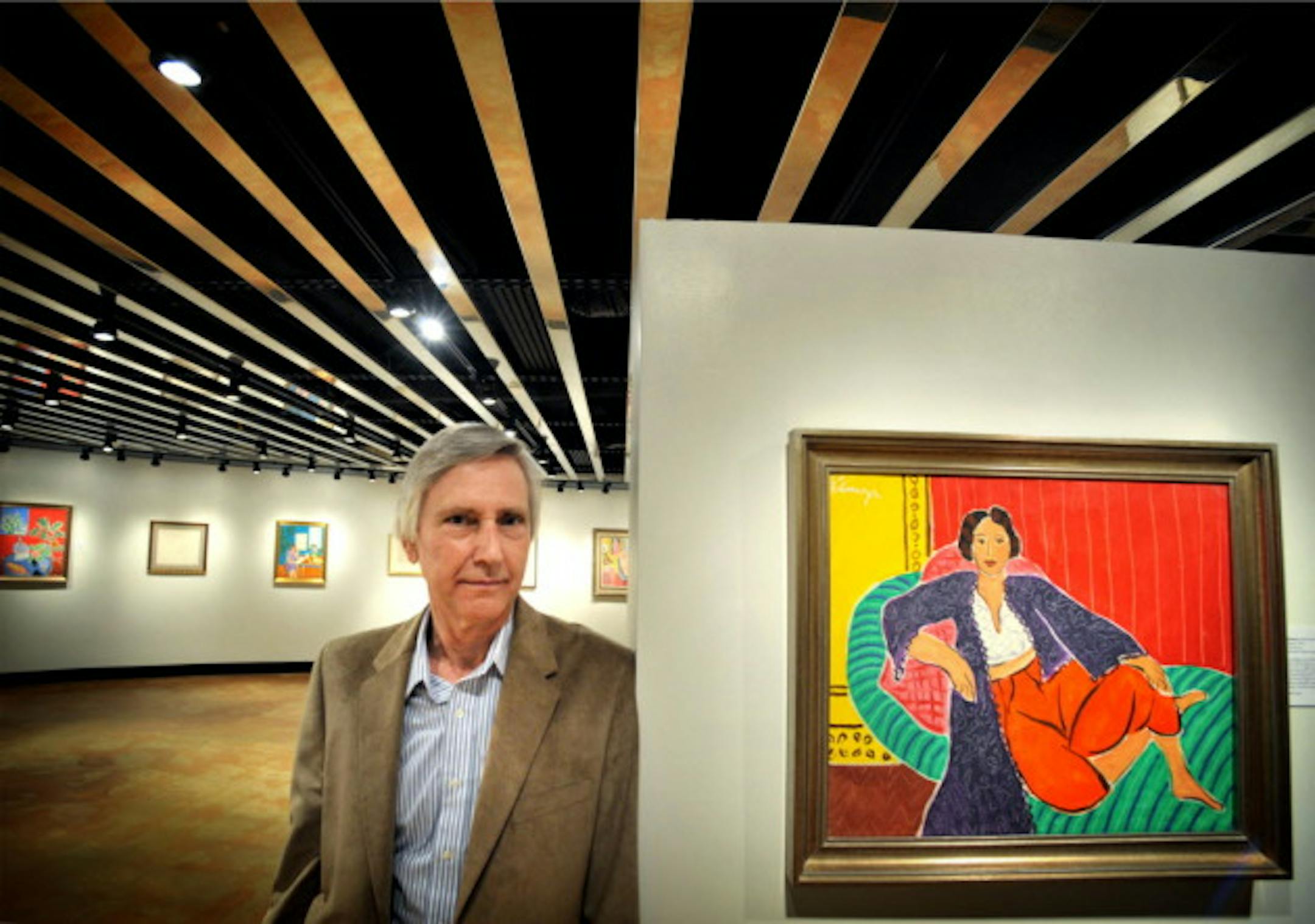 Mark Forgy with a fake Matisse painting by Elmyr de Hory in a 2009 exhibition at Gustavus Adolphus College. (Star Tribune photo by Glenn Stubbe)