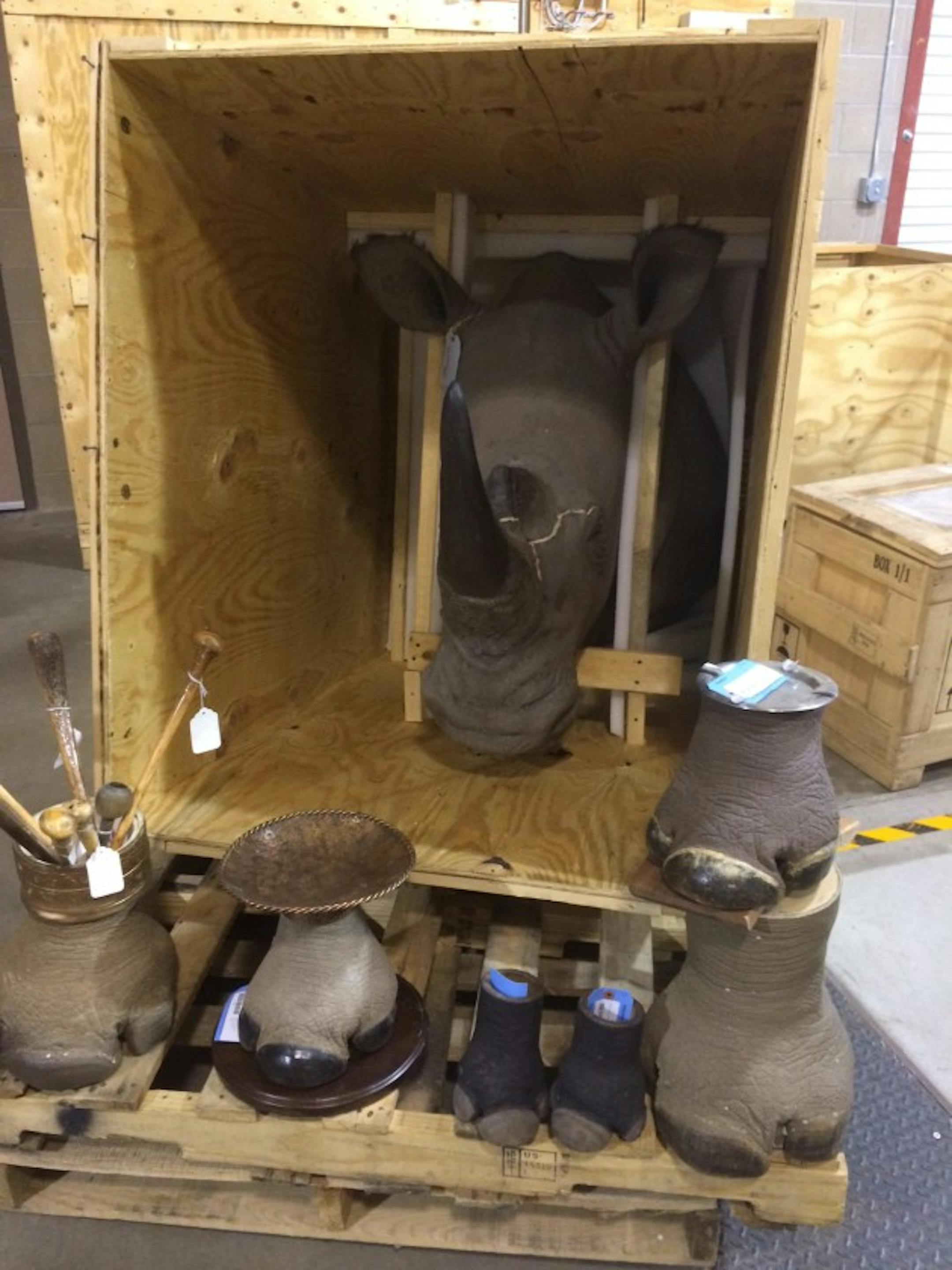 Confiscated Bengal Tigers, Leopards and other large Cats at the USFWS Repository in Denver, CO. The US is the number two consumer of animal parts, behind China, and there is a small but effective team in place to fight the illegal trafficking of animals. According to a USFWS fact sheet, "Destroying this ivory tells criminals who engage in poaching and trafficking that the United States will take all available measures to disrupt and prosecute those who prey on and profit from the deaths of these magnificent animals,".