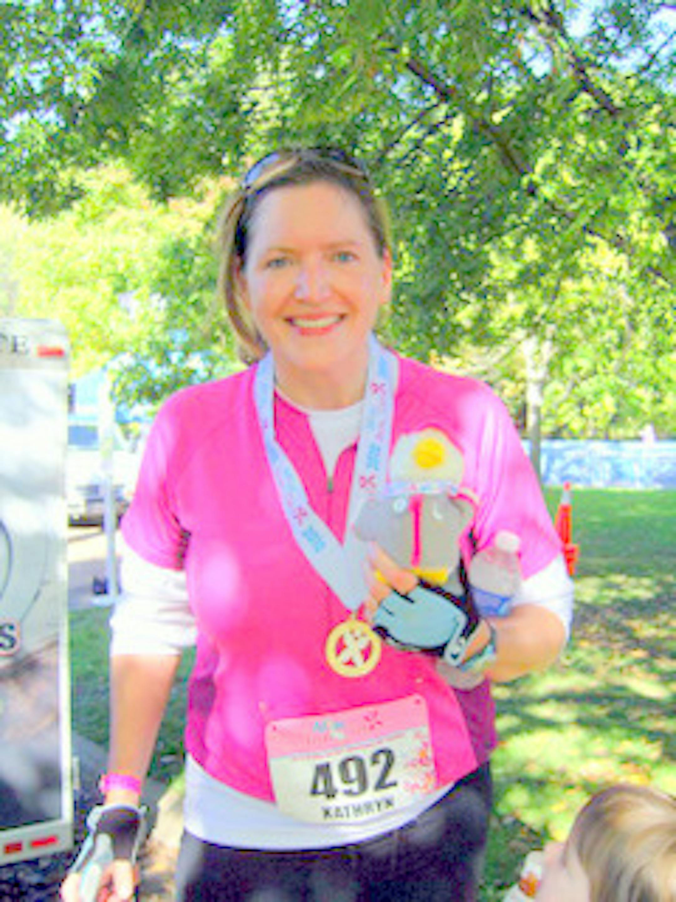 I later (over) shared with her that , although I was able to sleep the night before, this mama took extra time in the transition part of the race. Because well, post-baby, mothers on the run sometimes have to deal with a little, ahem, bladder issue. I'd talked openly about my #1 problem during my last pregnancy.