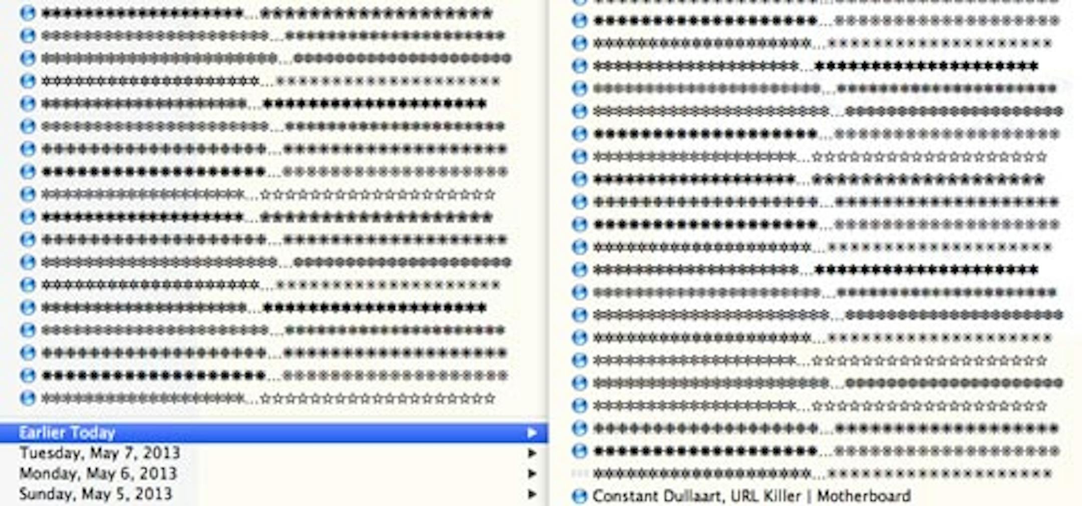 Deciding when to bricolage, that's the tricky part, isn't it. Well, this page has an account of his work. I clicked on his page. Let me show you what my history looks like after 30 seconds on his site:
