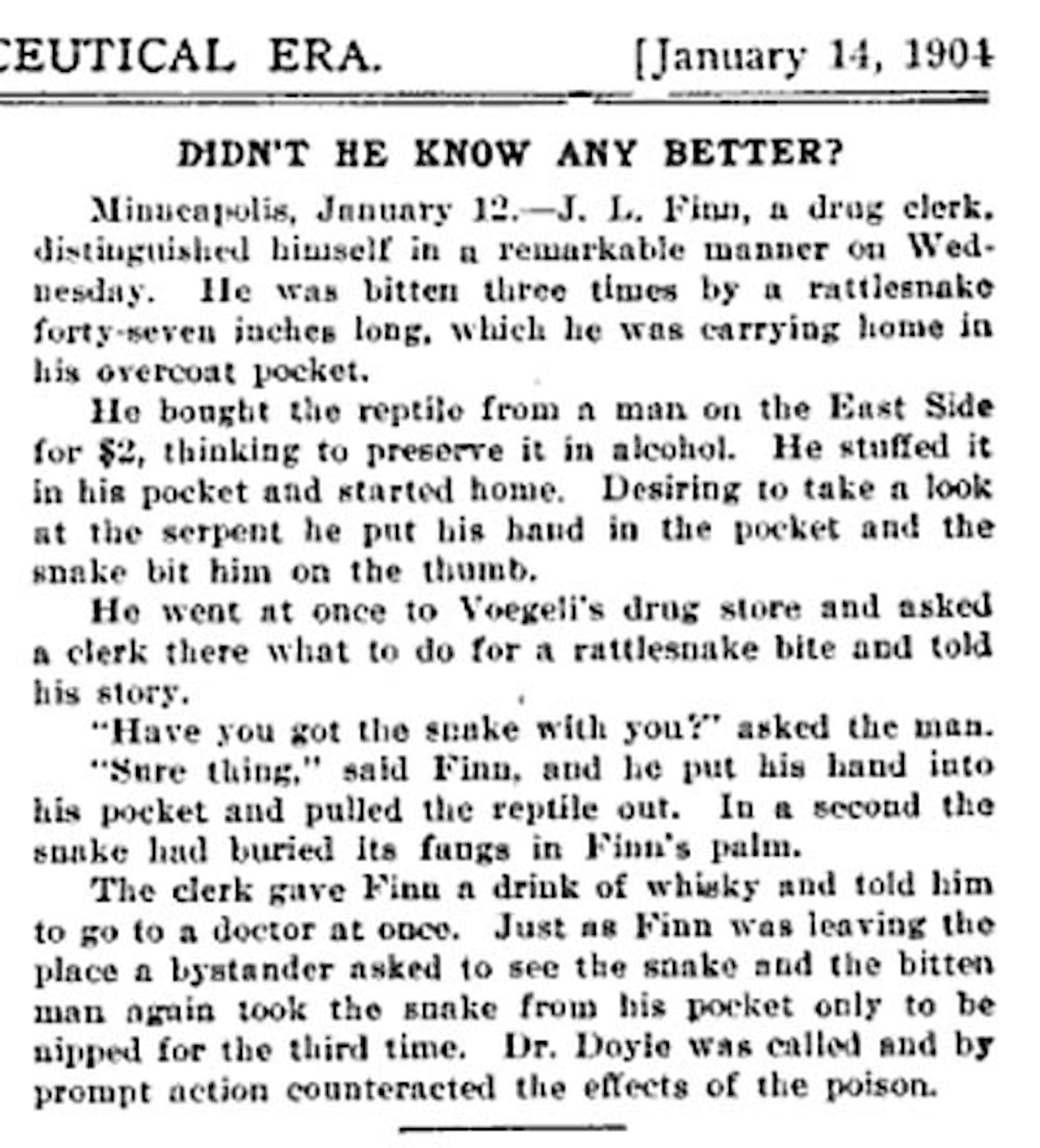 . . . Or are you glad to see me? You know how it goes - you're reading a 108-year-old trade journal for druggists, and you run across an interesting story from Minneapolis in the early days of the previous century.