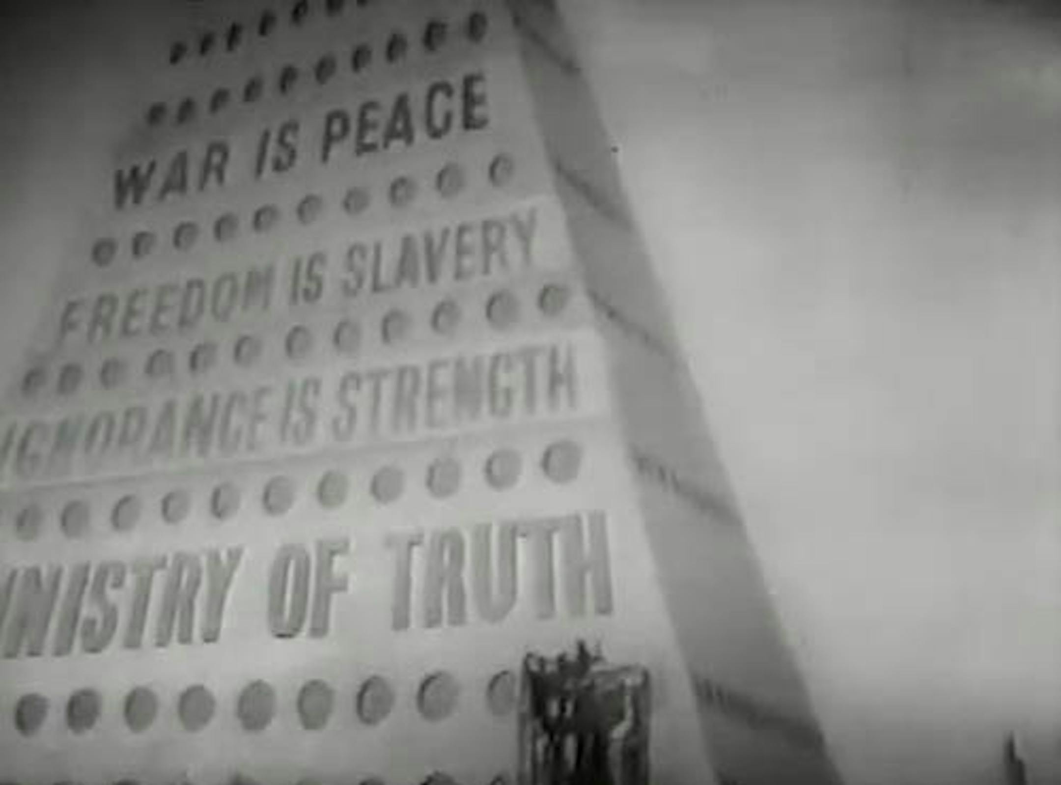 The BBC version - also live, and two hours long - was more literal. It showed the Ministry of Truth as a hideous pyramid emblazoned with state slogans: