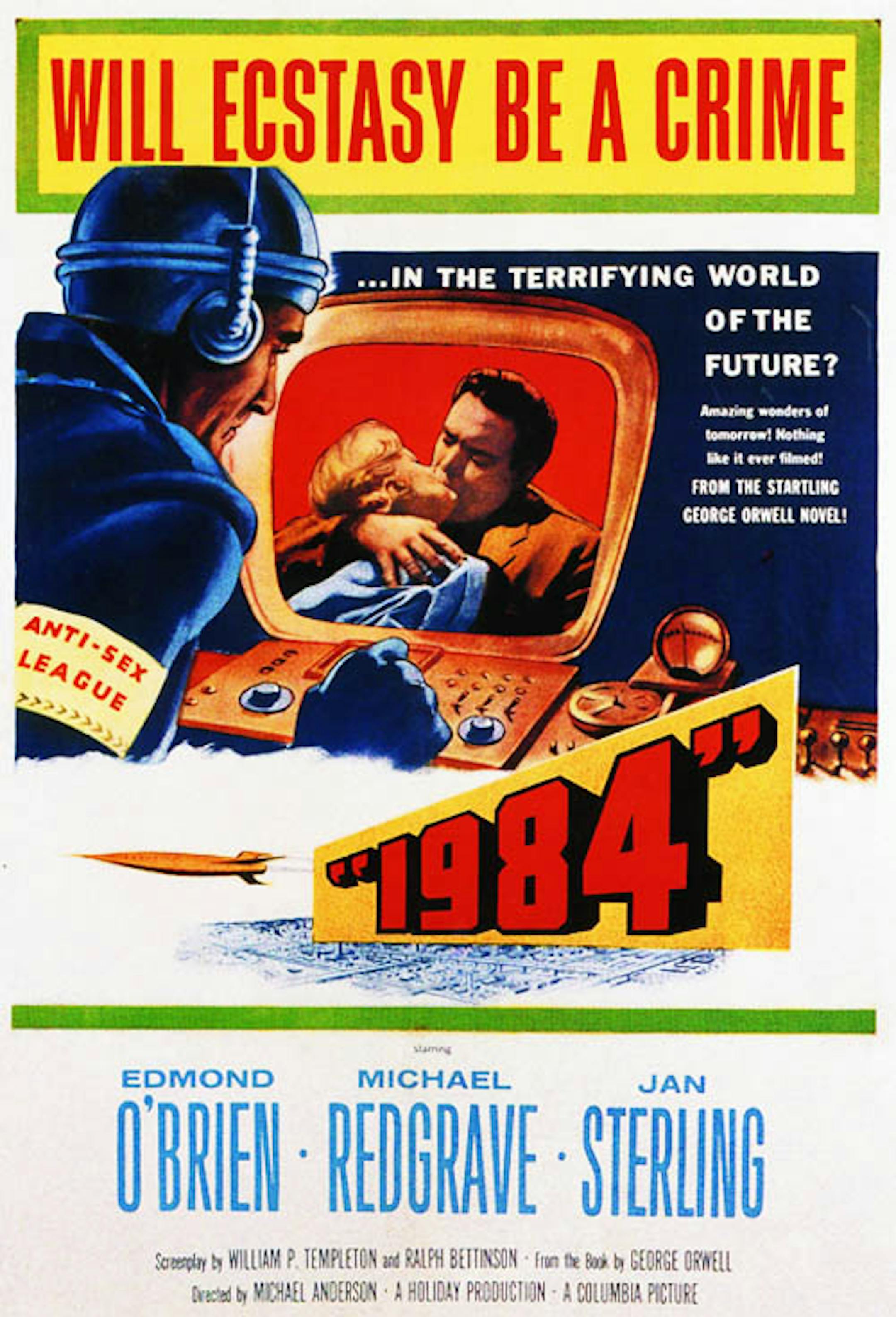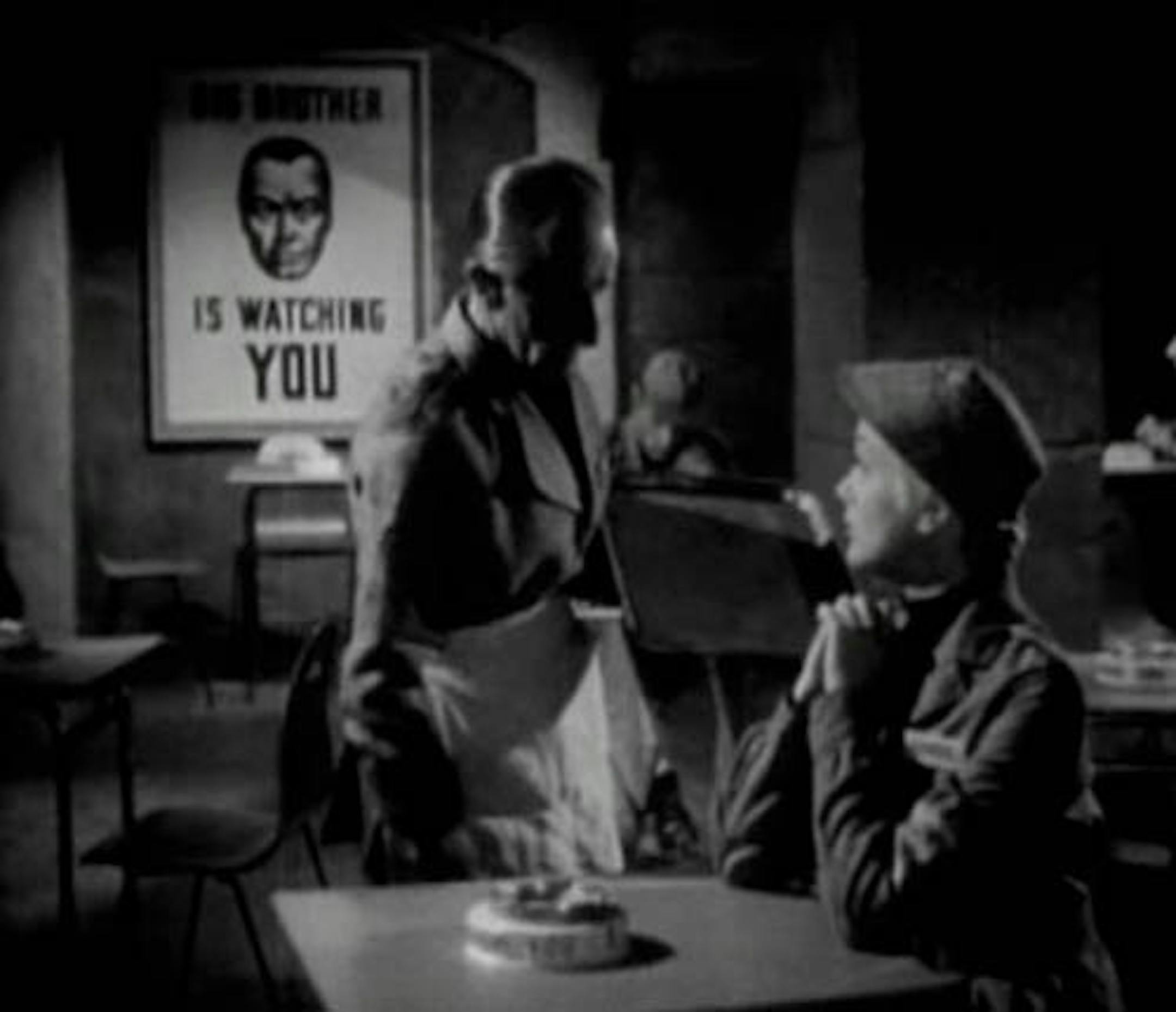 As the rule has it, the answer to any question posed in a headline is "no." But since the subject came up, the answer isn't just no, it's "you wouldn't ask that if you'd read the book." It does remind you - by which I mean me - that there have been several filmed versions of the book, each with their own version of Big Brother. Let's take a look. First of all, here's Eddie Albert as Winston Smith, looking more farmer-like than he ever did in "Green Acres."