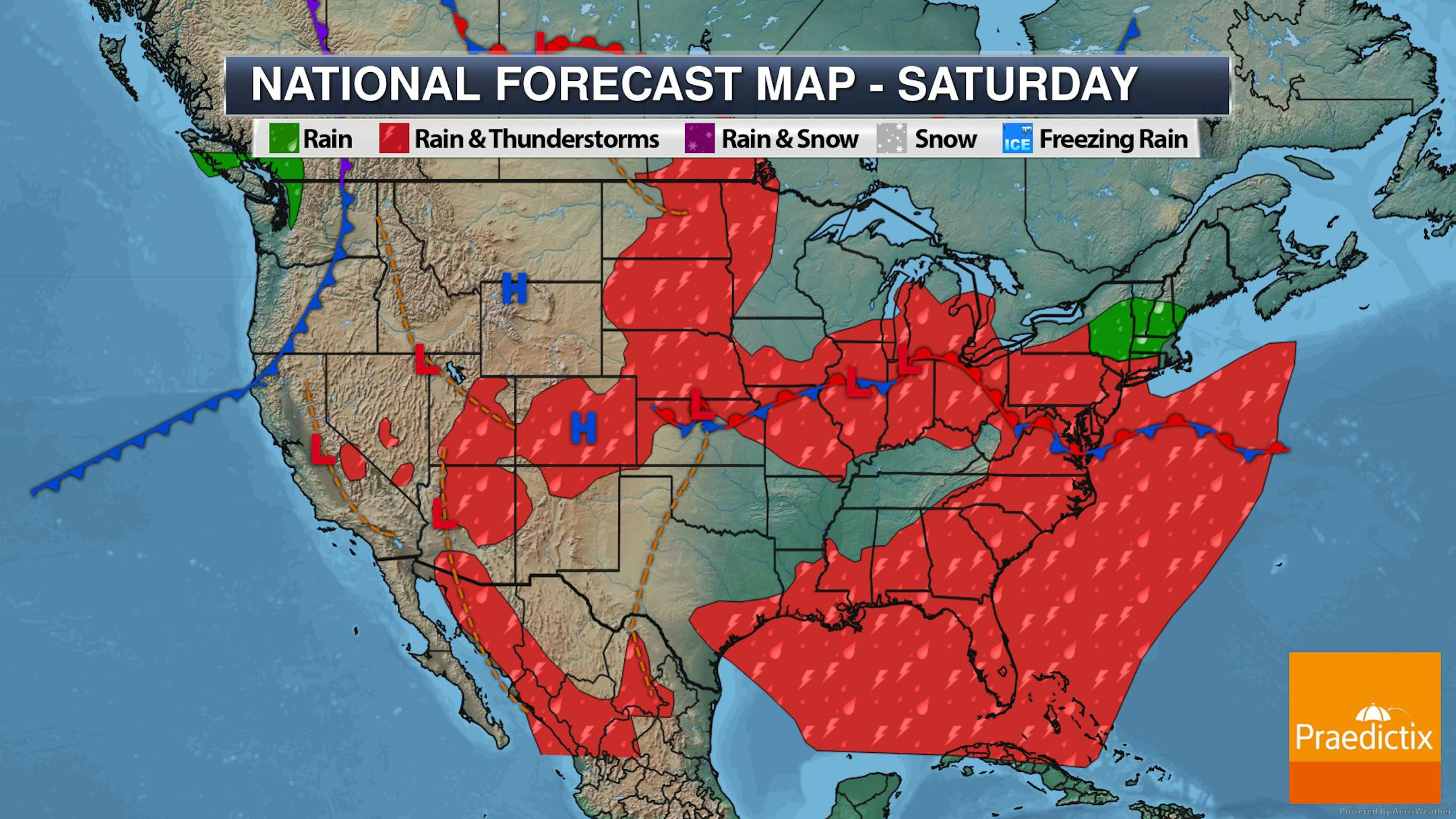 For the first day of the weekend, we do track the potential for a few pop-up showers and storms during the afternoon hours, but odds are fairly low of those occurring (20%). For the most part, the day will just feature more clouds than sunshine. Morning temperatures start off in the low to mid-60s with highs in the low to mid-80s.