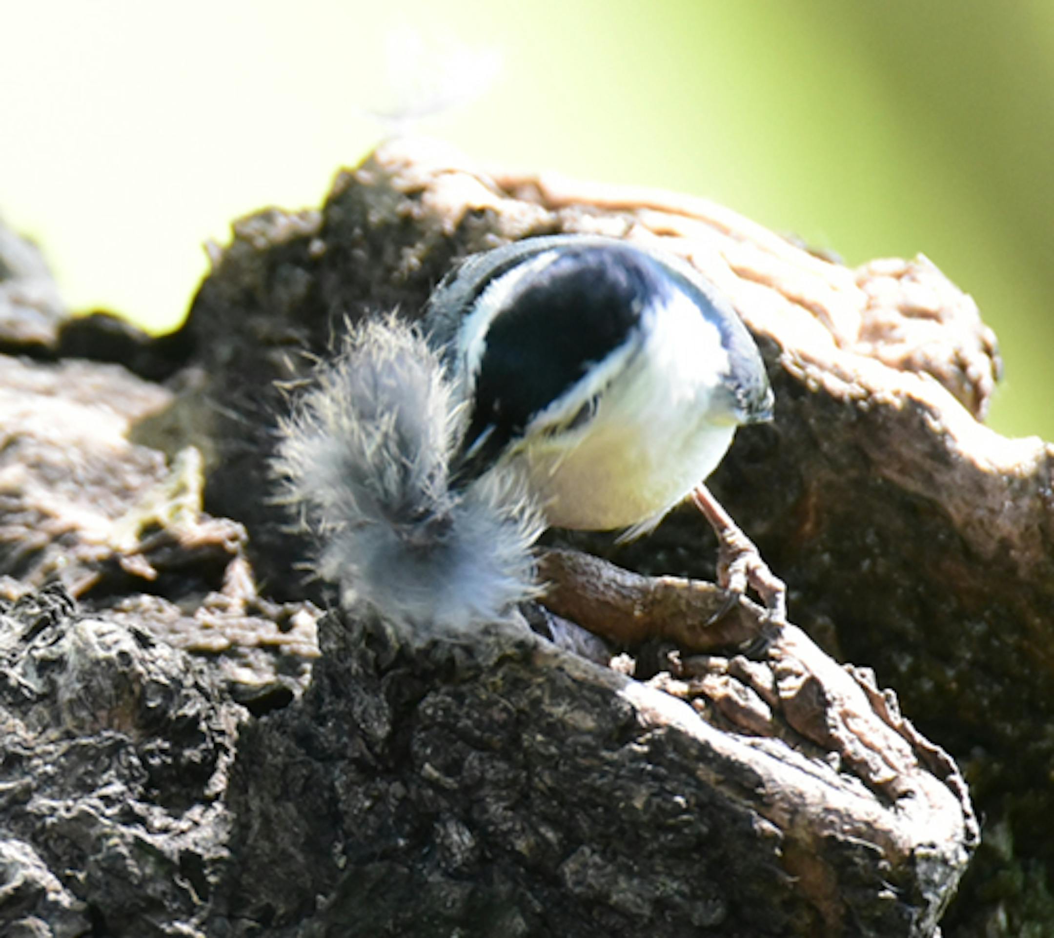 The white-breasted nuthatches that nested in our yard this year and last have behaved in an obvious way that seems to have no known explanation.