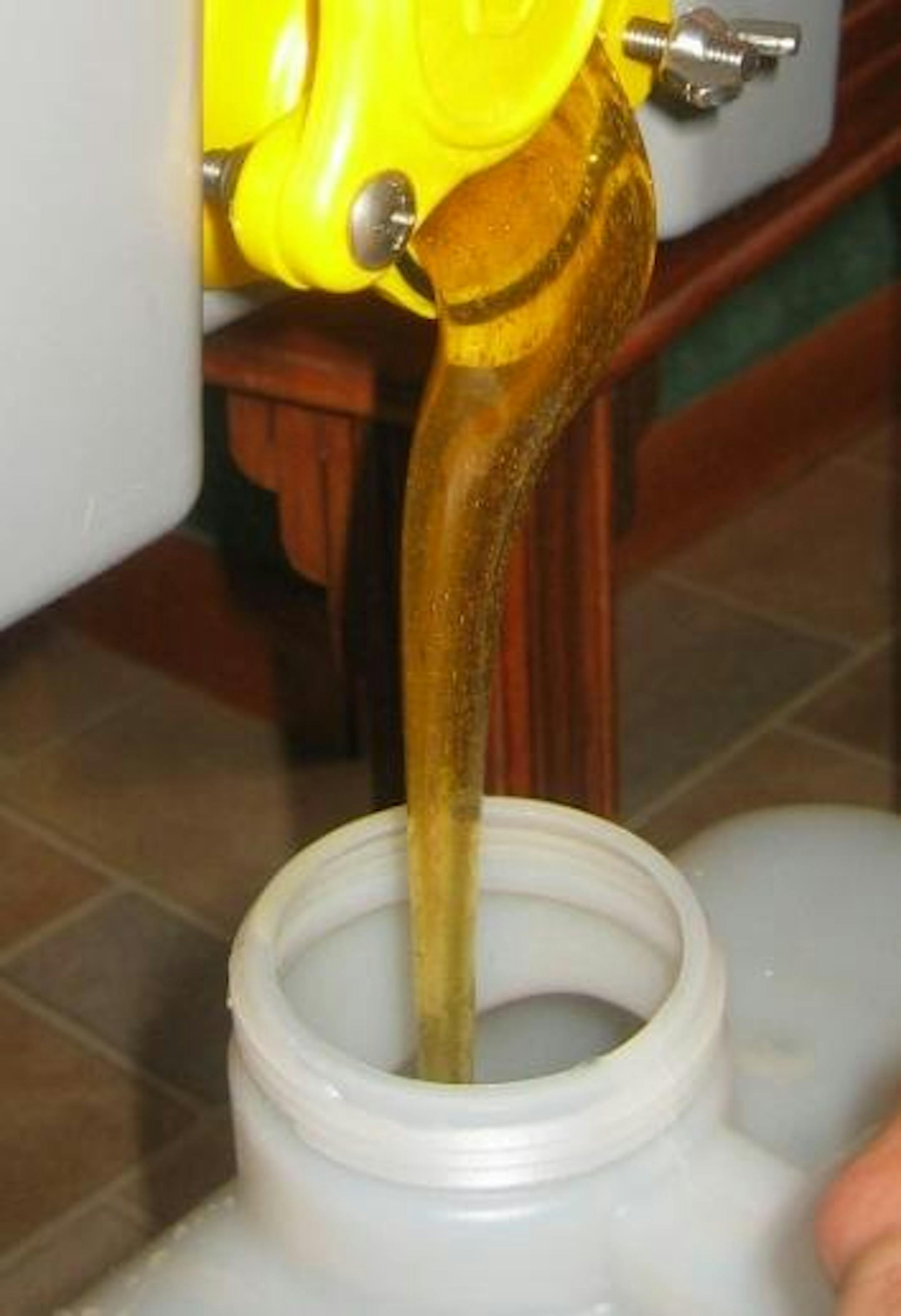 We then filter the honey through cheesecloth into plastic food grade jugs. Again these jugs need to be kept warm until we are ready to bottle. There's also another process of saving all the wax, but I didn't have any shots of that (my fingers were too sticky for the camera!)