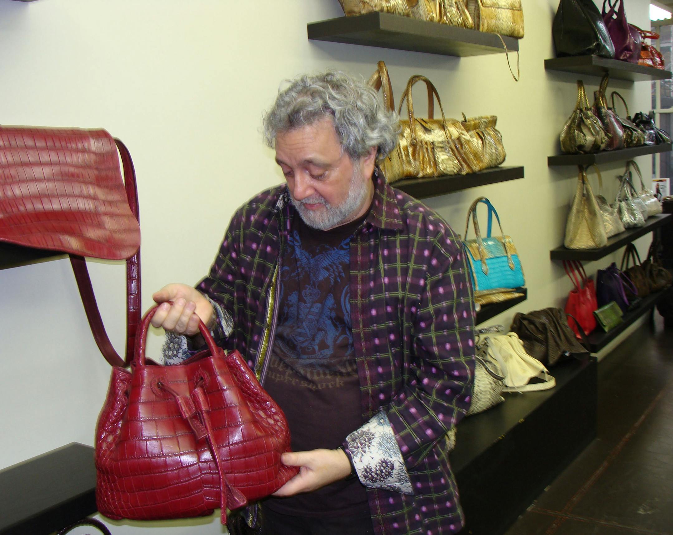 Before his visit, we caught up with Falchi at his Manhattan studio last month. That day, Falchi was personally mixing a batch of dye for a series of "mushroom"-colored handbags and taking calls on his Bluetooth headset, all while answering questions with a slight Portuguese lilt in his English.