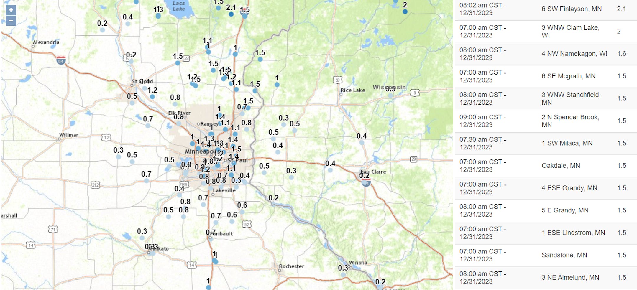 "Here are the results of voting for the top five weather events of 2023 from the Minnesota State Climatology Office. Votes were cast from various weather enthusiasts including the National Weather Service, the University of Minnesota, State agencies and Facebook followers. #5 "Big Mess" Snowstorm Clobbers Minnesota: January 2-5, 2023 The New Year greeted Minnesota with a large, messy winter storm, as a concoction of heavy snow, freezing rain, sleet, rain, and thunderstorms pounded parts of the state. The storm produced widespread accumulations of over one foot, with 15.1 inches for a storm total in the Twin Cities, making this the 14th-largest snowstorm on record since 1884."
