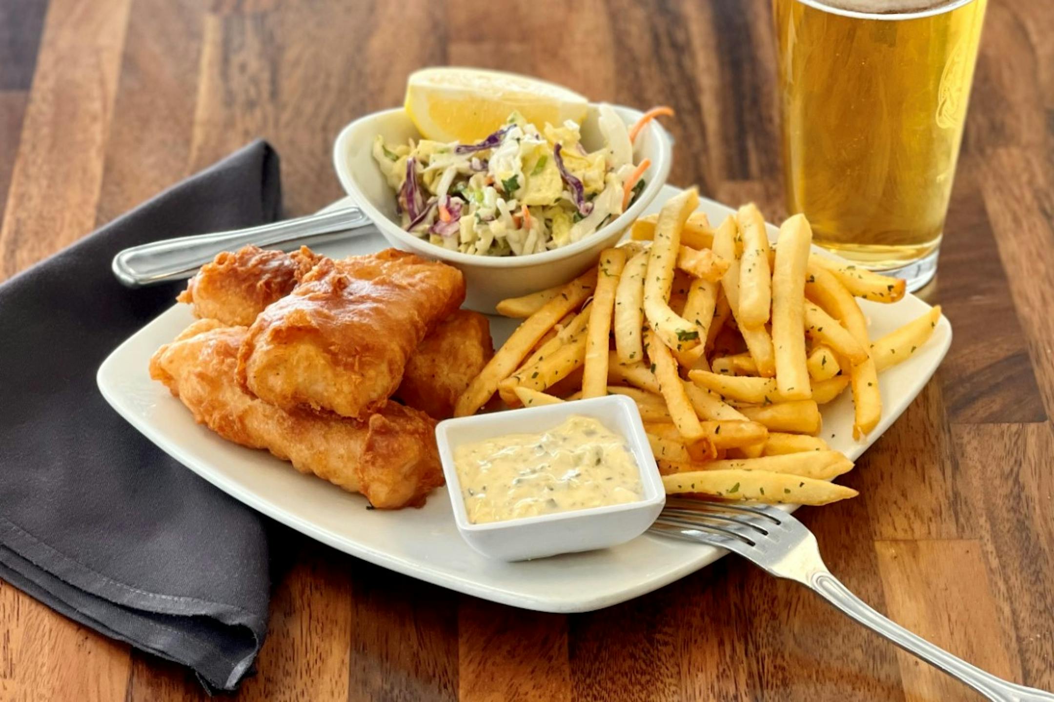 Fish fry baskets are back every Friday through Lent — three pieces of beer-battered walleye with a side of fries and fresh tartar sauce ($13.50).