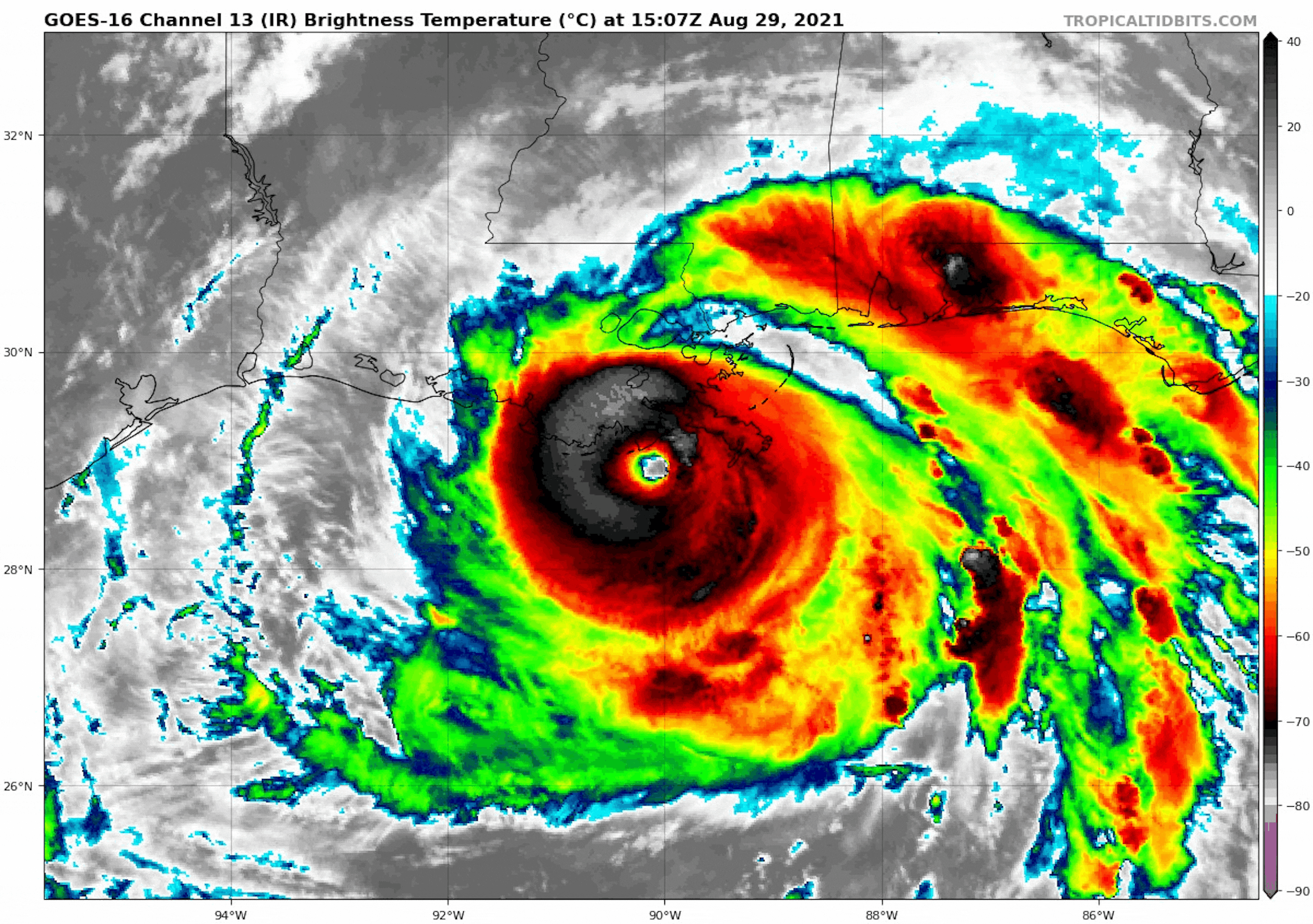 Here was the IR Satellite Loop of Category 4 Hurricane Ida as it was making landfall near Port Fourchon in Louisiana. Interestingly, Hurricane Ida made landfall 16 years to the date of Hurricane Katrina in 2005 that was responsible for nearly 1,600 deaths in Louisiana alone.