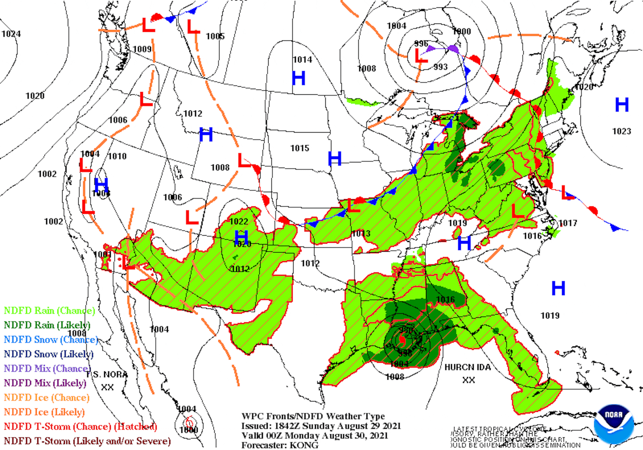 According to NOAA's NHC, Ida will quickly deteriorate as it moves inland through the early week time period. Gusty winds and heavy rains will still be attributed to Ida, but Ida will quickly lift northeast as we approach the 2nd half of the week and will be east of the U.S. mainland by Thursday.