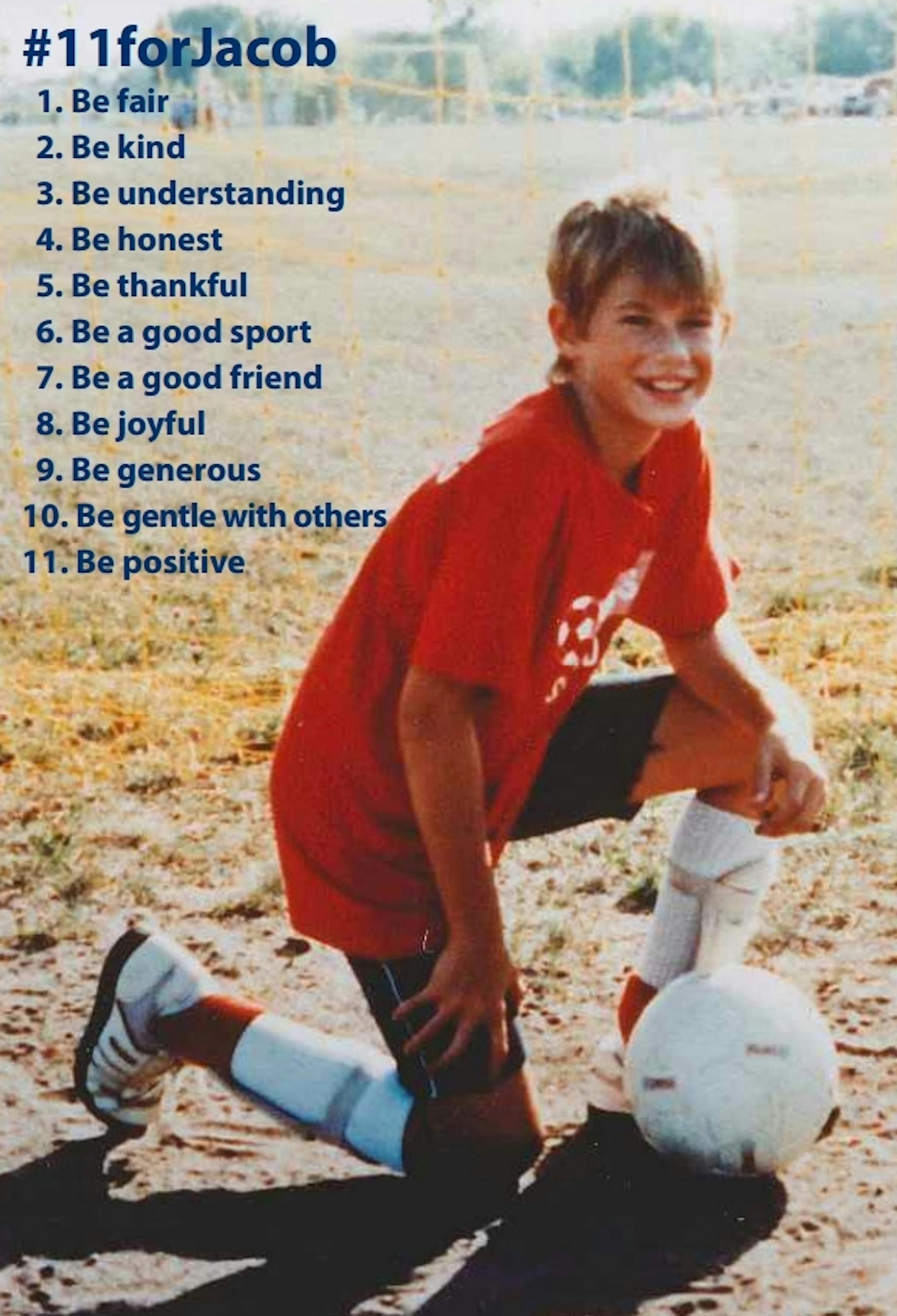 Another version of the ad included the hashtag #11for Jacob and listed 11 values that encouraged readers to be fair, kind, gentle, positive and honest.