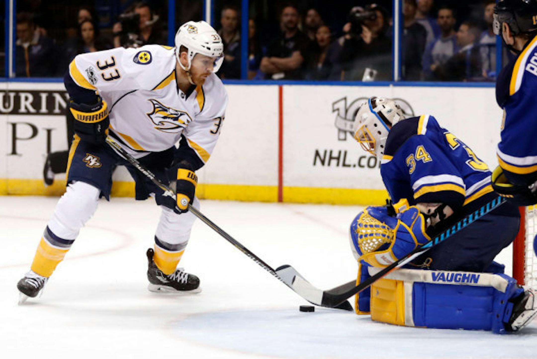He gave up four goals in the Blues' 4-3 Game 1 loss to Nashville in the Western Conference semifinals Wednesday night. He finished the game with 28 saves, but only a .875 save percentage.