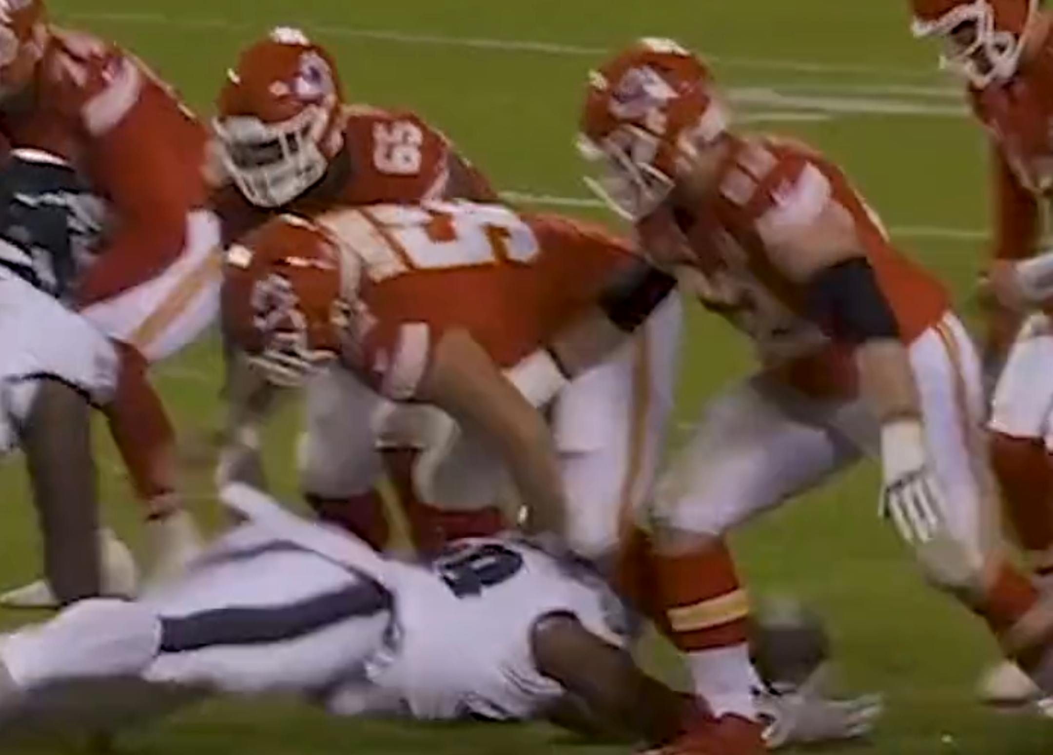 With time ticking down in the first half and Kansas City ahead 14-7, quarterback Patrick Mahomes completed a short pass to Jerick McKinnon to help the Chiefs get into better field goal range. All 11 Kansas City players dutifully hustled to the line, with the team out of timeouts, so Mahomes could fire it into the ground with a couple seconds to spare before halftime.