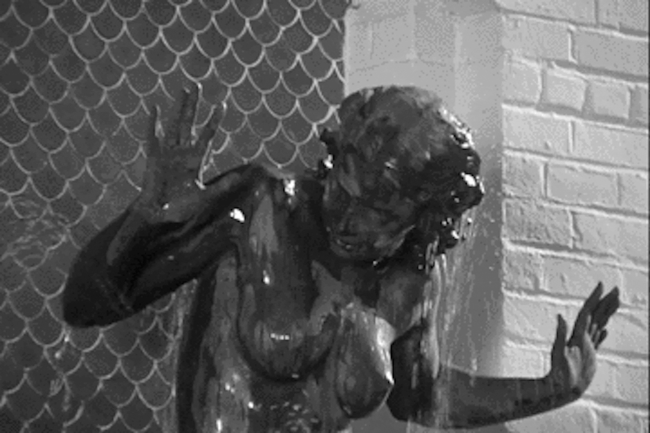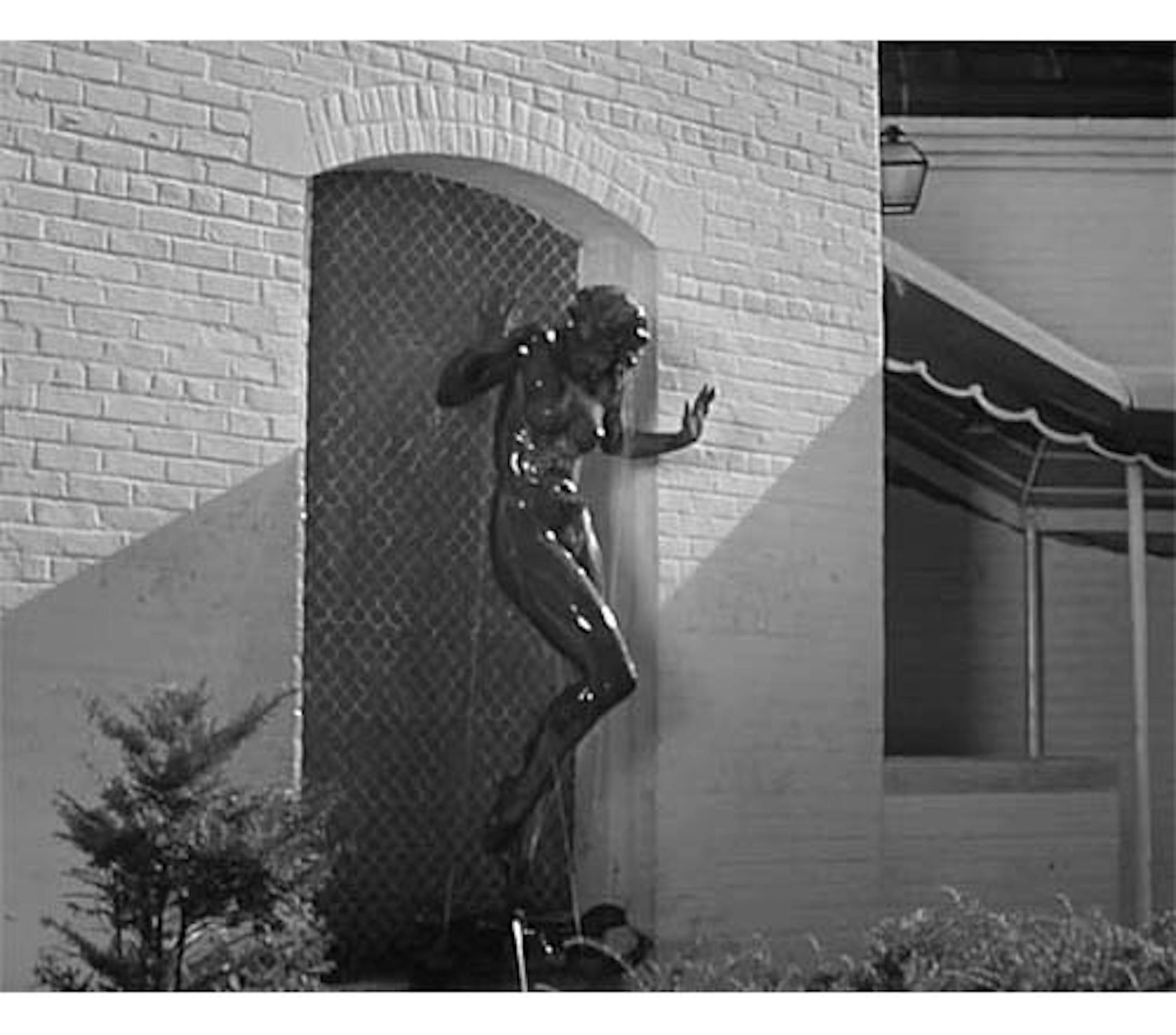 But not at first. The statue, named "Scherzo," was originally installed at the Foshay Tower. Harriet Frishmuth was the sculptor. This picture shows the dedication ceremony in a space I believe is now the empty court of the TCF building. Up to now I've only seen stills, but the "Route 66" show had a brief sequence of the way the water splashed up - which we now present in GIF form.