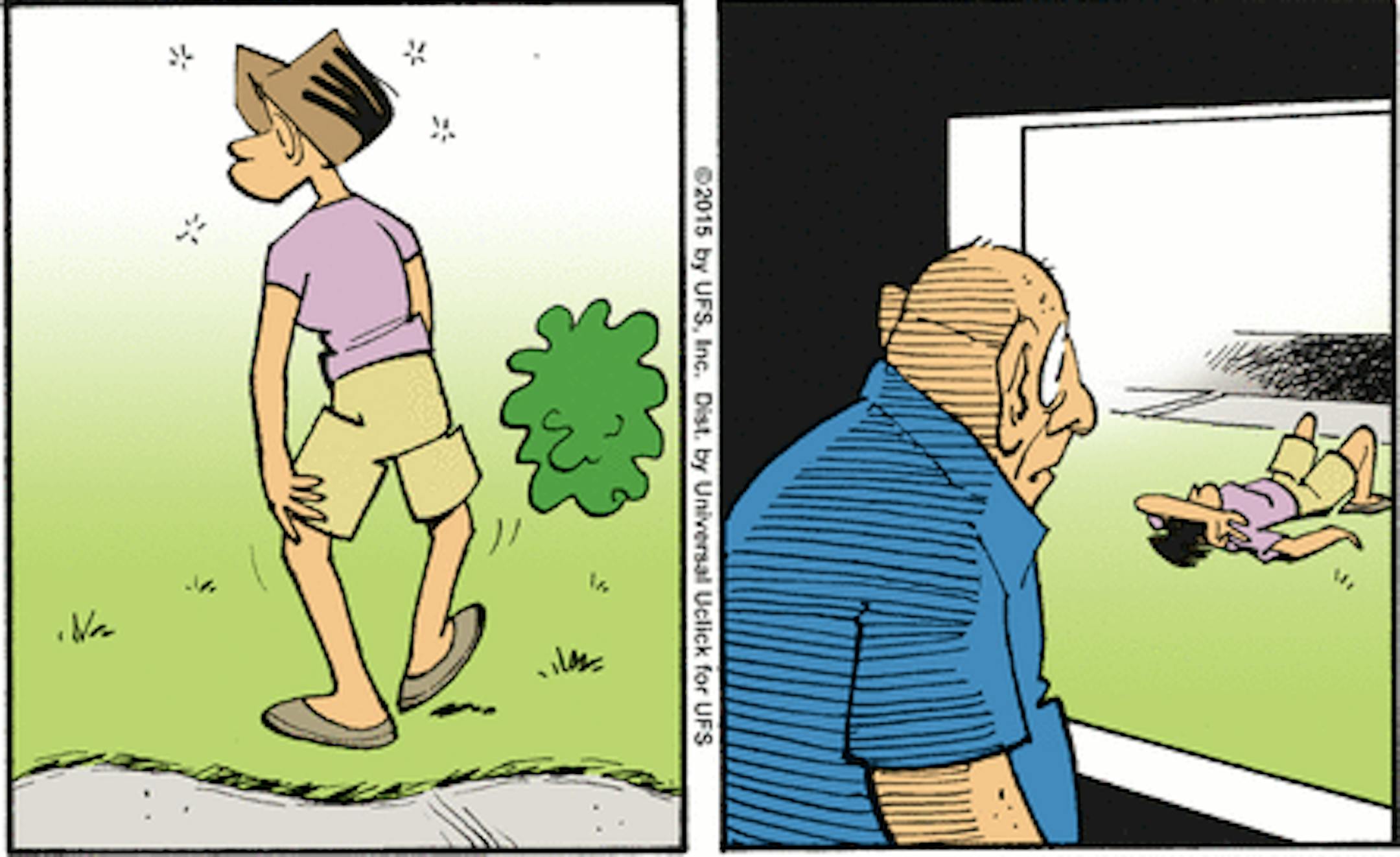 My daughter cut out a strip from the comics page this morning, because she thought it was funny. Nice to know such a thing is possible, and that kids are not immune to the strange compulsion, the thankless duty, to read the page and see if there's anything that lives up to the term "comic." Last week we wondered why Arlo was yelling about lizards' today the strip takes a much darker turn.