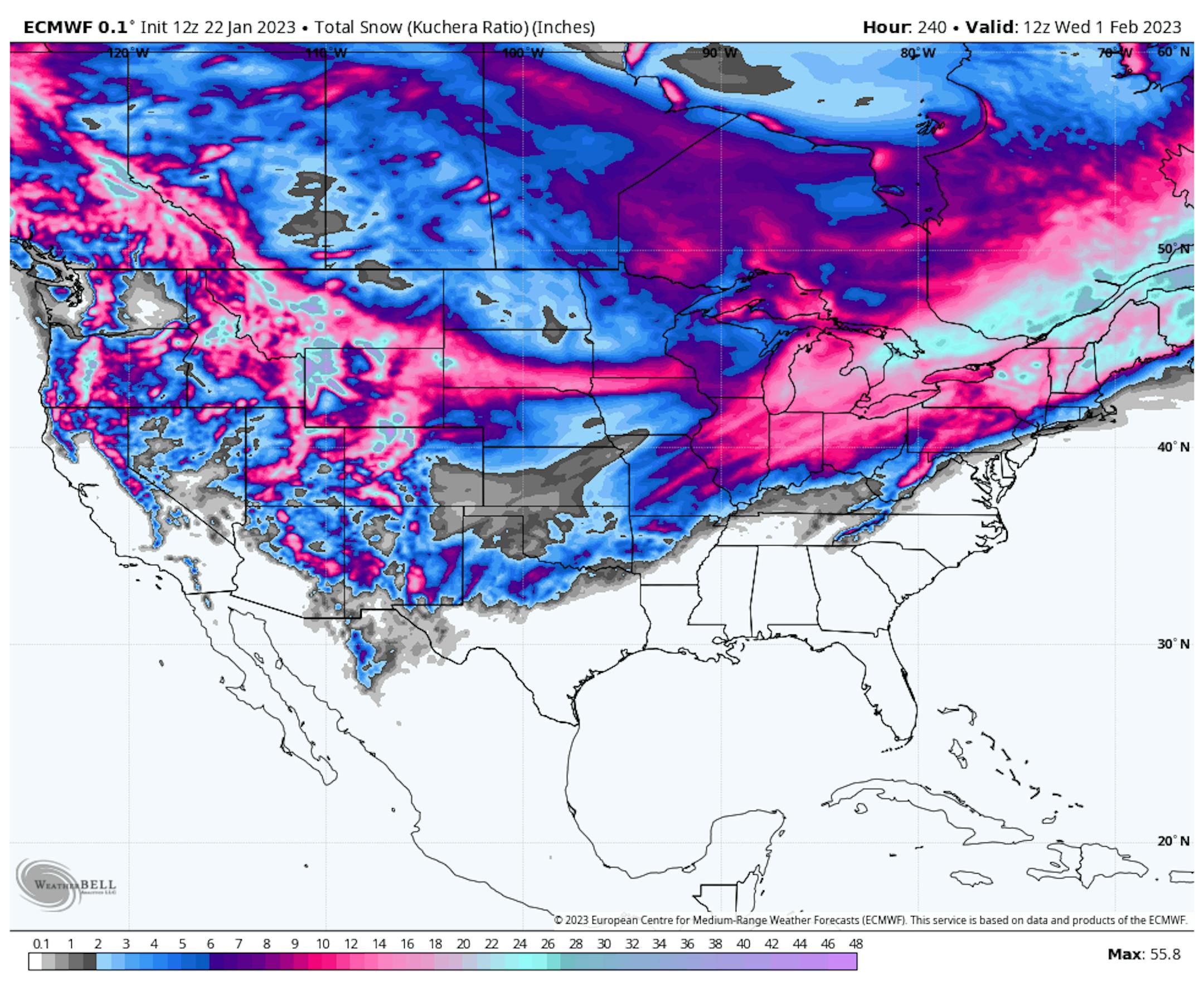 Taking a look at snowfall since July 1st, many locations have seen above average amounts so far this season, but folks from near Sioux Falls to the Twin Cities and towards Duluth are nearly 20" to 30" above average through January 21st. 52.5" of snow has fallen at the MSP Airport, which is the 4th snowiest start to any season on record.