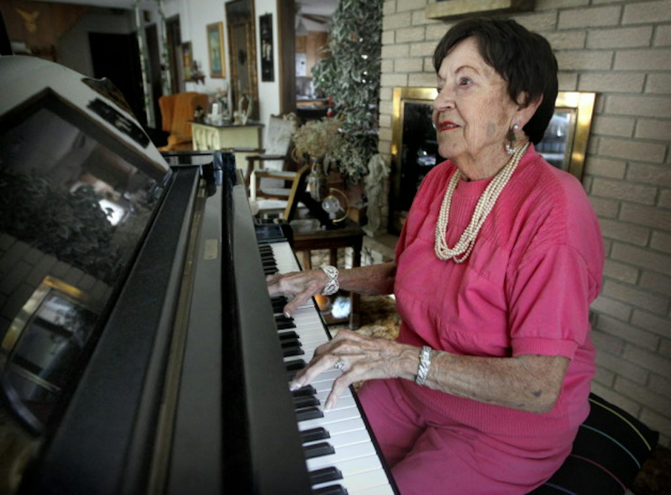 Jeanne Arland Peterson at her home piano in 2011 on her 90th birthday/ Star Tribune photo by Tom Wallace