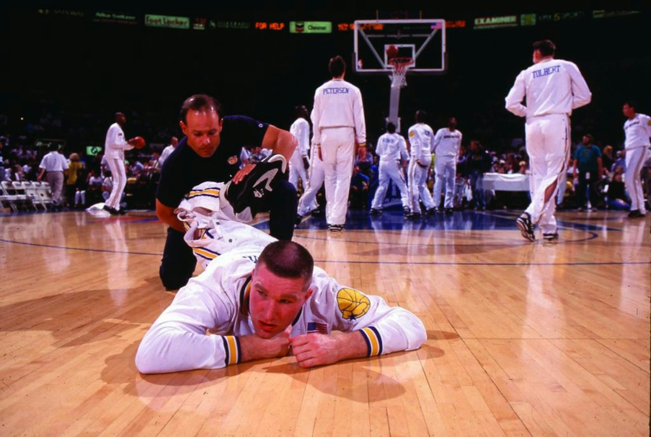 He was there during a 1991 playoff series in Los Angeles when they took a cab together to the Fabulous Forum near midnight and talked a surprised security guard into letting them inside so Mullin could test a knee injury that made him miss Game 1 against the Lakers. He shot for 45 minutes in an arena illuminated only by a security floodlight, then went out the next day and scored 41 points in a memorable duel with Magic Johnson, who answered with 44.