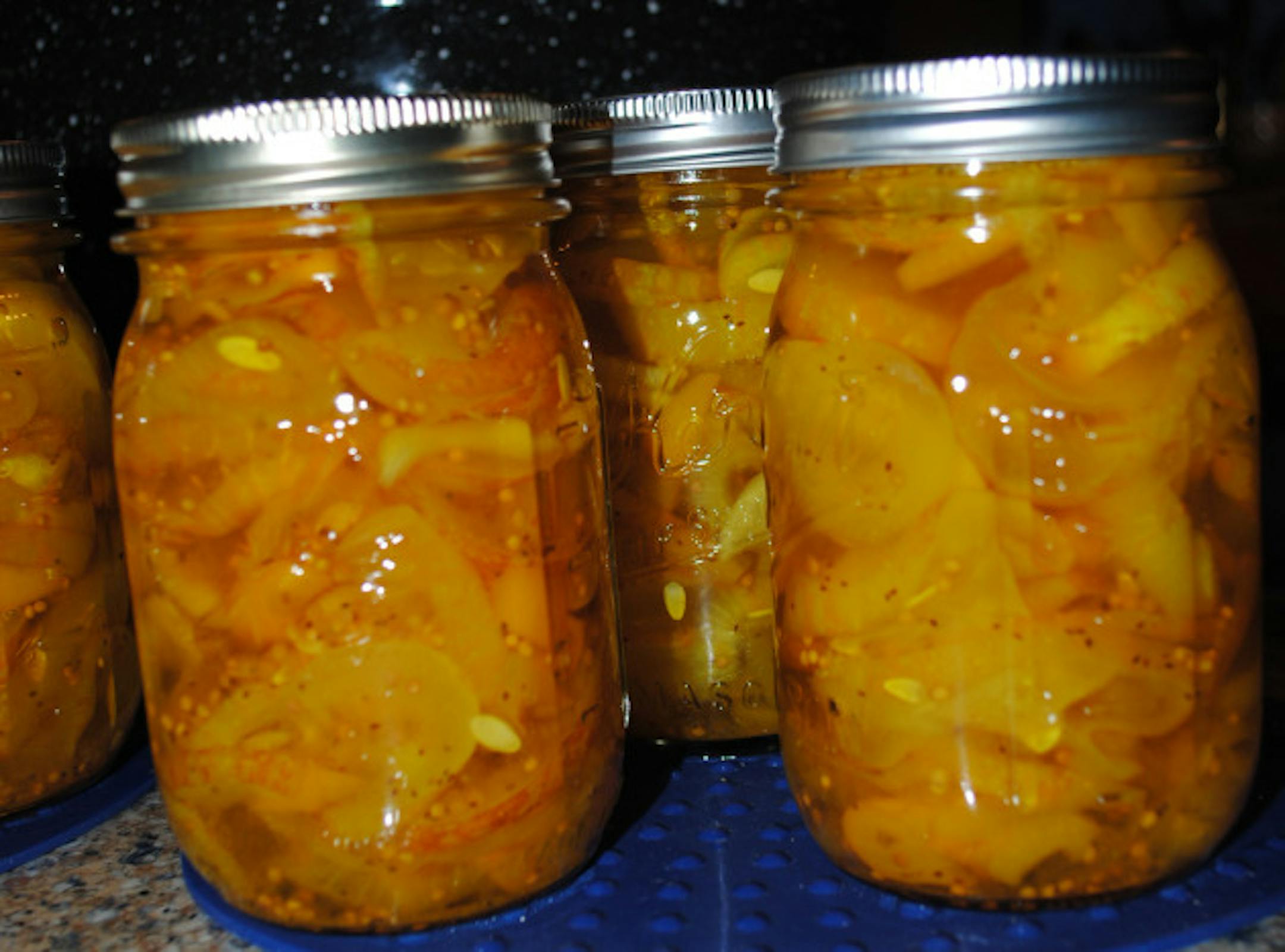 Three years of canning have somewhat increased my confidence that I won't produce something in the lethal category, but I still hold my breath, counting those reassuring plinks and plonks as the jar lids seal. I'm starting to understand my grandmother's zeal for pickling anything, although I won't be heading down the road of pickling strange meat products in those funky triangular jars she used. But zucchini pickles, sure. Carrot pickles, yes. Bean pickles? Not yet, but that's next on the list.