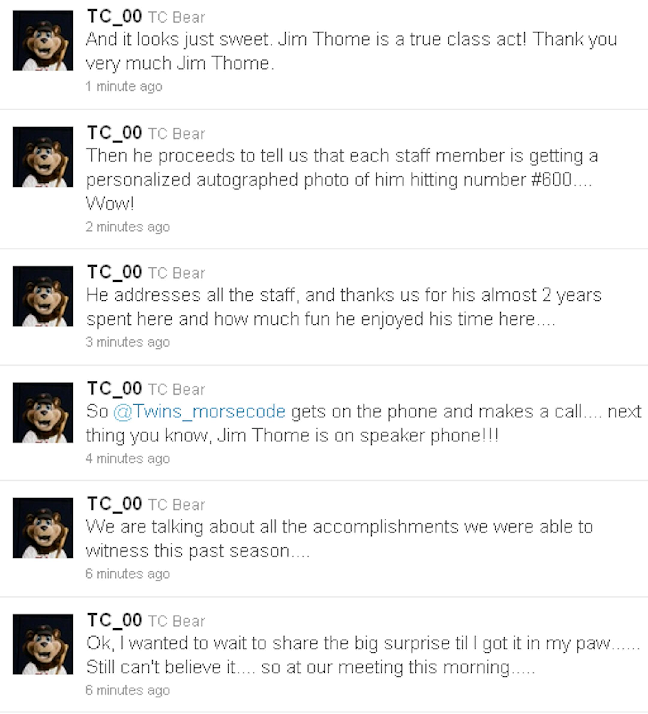 4) Jim Thome is a class act. OK, you already knew that one. But here is a string of tweets from TC Bear confirming it (read them in reverse order):