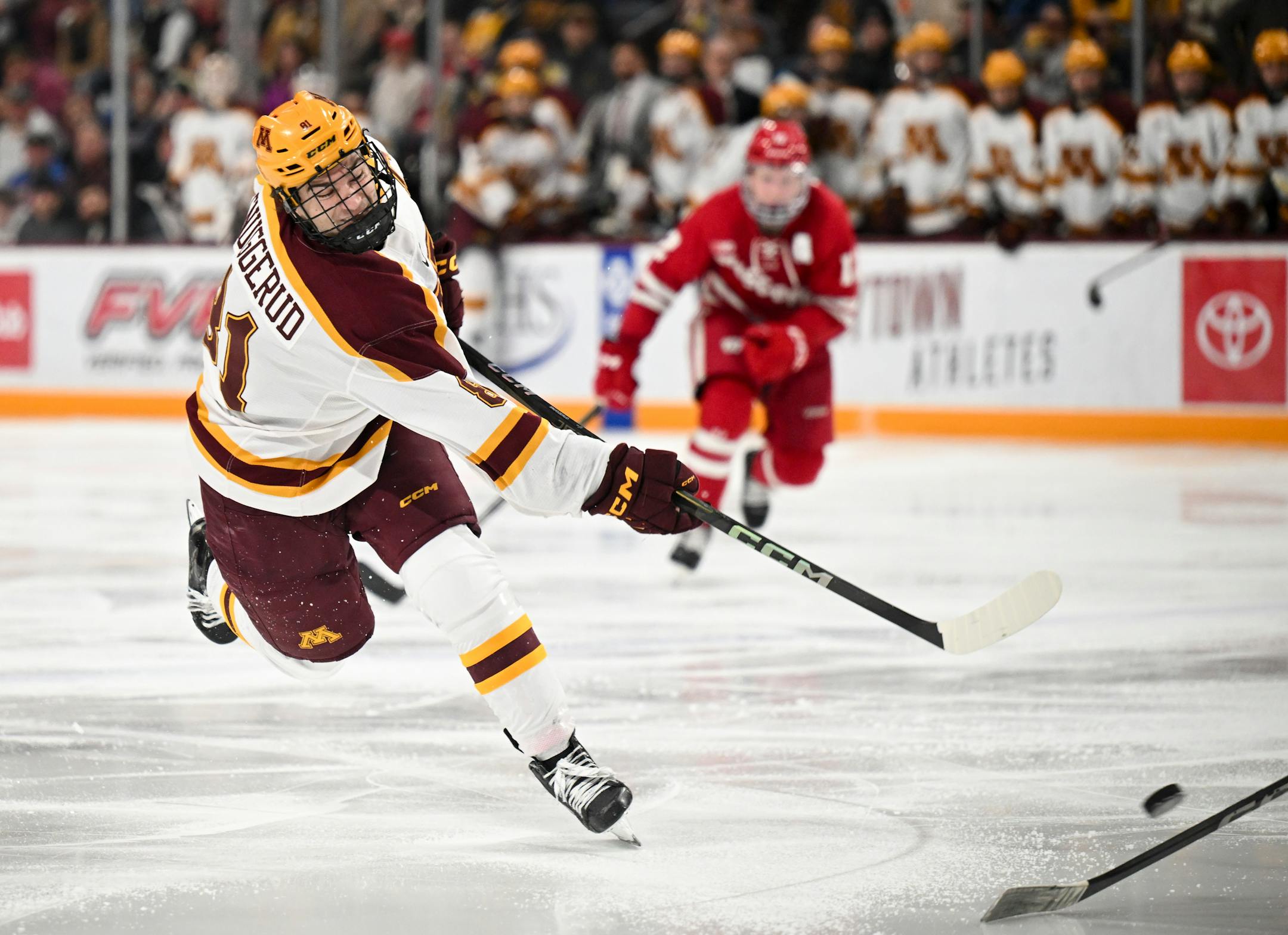 The 20-year-old finished his Gophers career by scoring two goals Thursday night, a power-play tally at 14:14 of the first period for a 1-0 lead, then an even-strength goal to force overtime with 3:36 left in the third period. The Chaska native finished the season with 24 goals and 27 assists, ranking sixth in goals and fifth in points nationally. He’s a Hobey Baker Award top-10 finalist and a first-team All-Big Ten honoree.