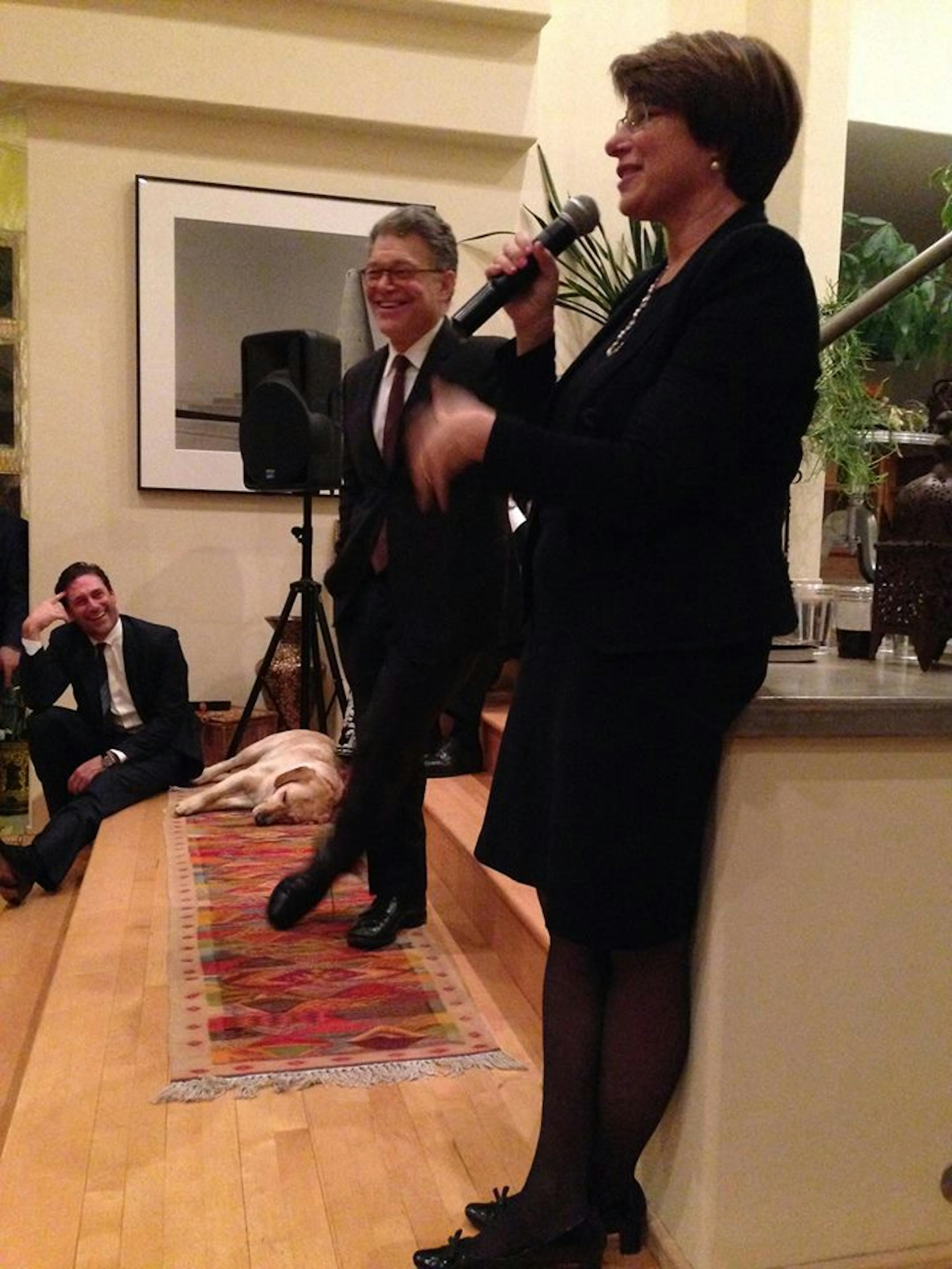 Sen. Amy Klobuchar gets a laugh out of Hamm and her fellow senator and other guest of honor, Al Franken, at the fundraiser.