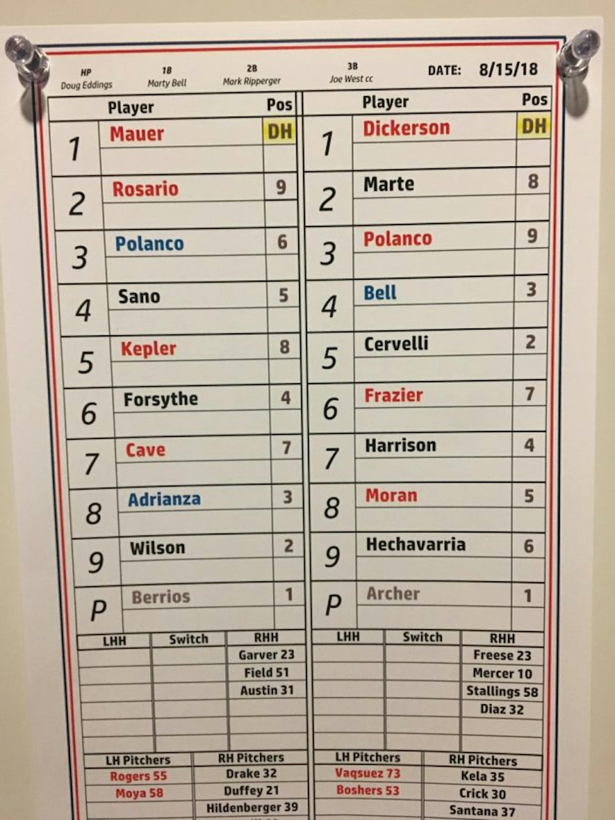 Joe Mauer leads off and is DHing for the Twins. Bobby Wilson will catch Berrios.