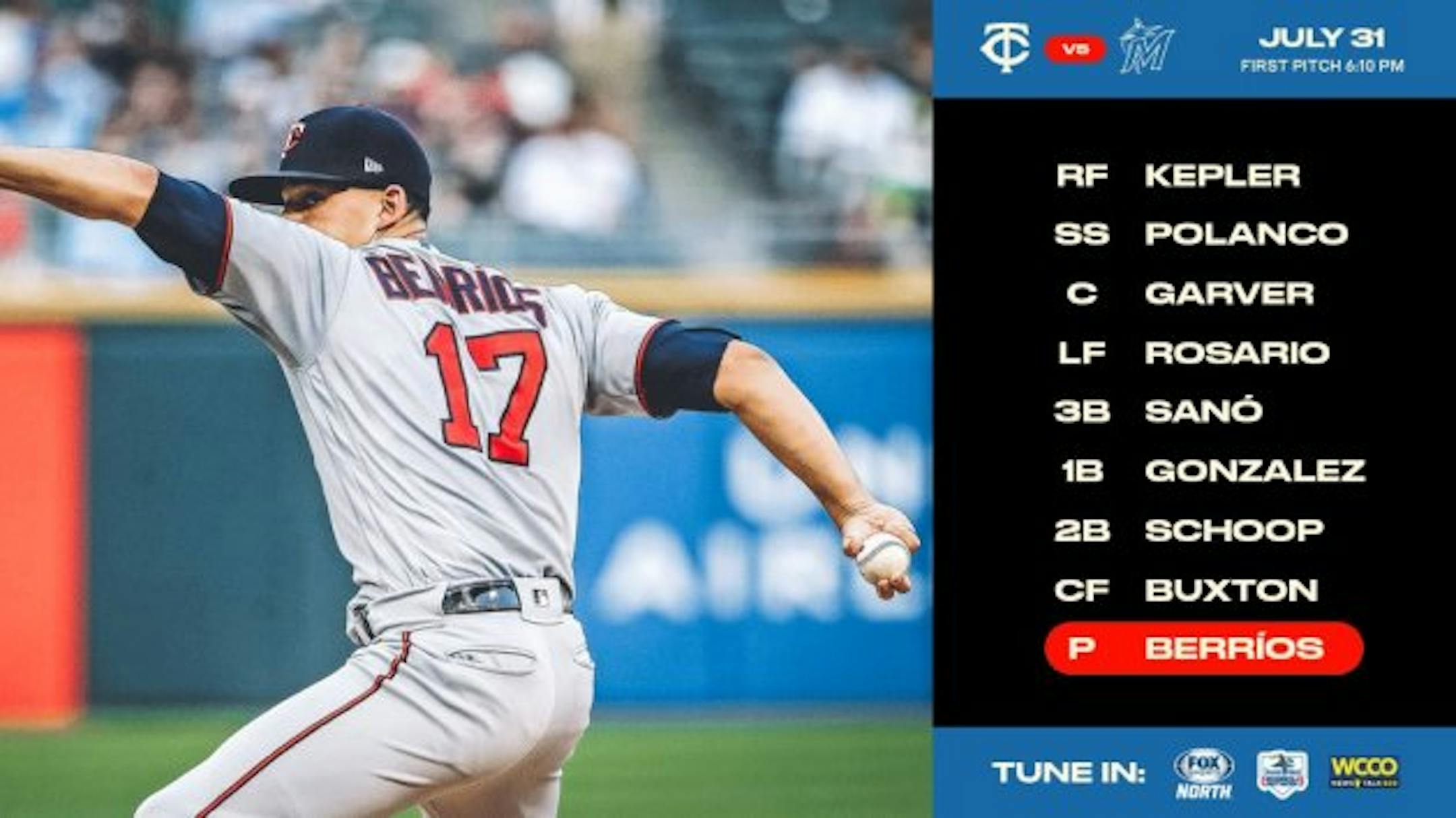 MIAMI -- The Twins and Marlins play the second of a three-game series today (6:10 p.m., FSN) with Jose Berrios facing Sandy Alcantara.