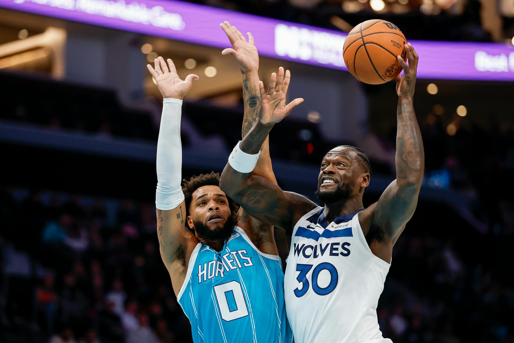 Charlotte ended the first half on a 10-2 run over the final 2:08 to take a 56-50 lead into the break. But the Wolves chipped away in the third quarter, taking the lead for good on a Randle three-pointer following a Rob Dillingham steal with 5:20 to play in the period. Gobert grabbed 11 rebounds in the third quarter, the 10th double-digit rebound quarter of his career.