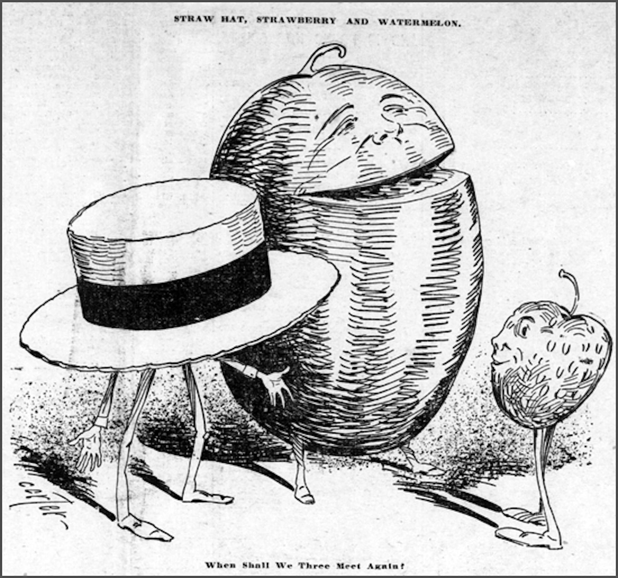 The label atop this page one cartoon from the St. Paul Daily Globe reads like the start of a bad joke. Maybe it was. I can find no explanation of it in the adjoining text or elsewhere on the page. Perhaps it was a dig at the fruit or haberdasher trusts. Or a lame attempt at Independence Day humor. What do you make of it?