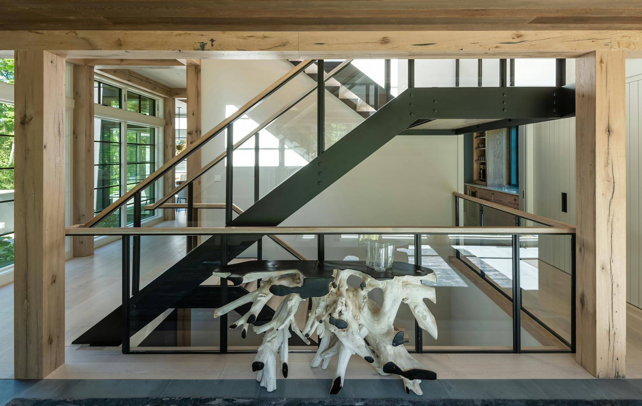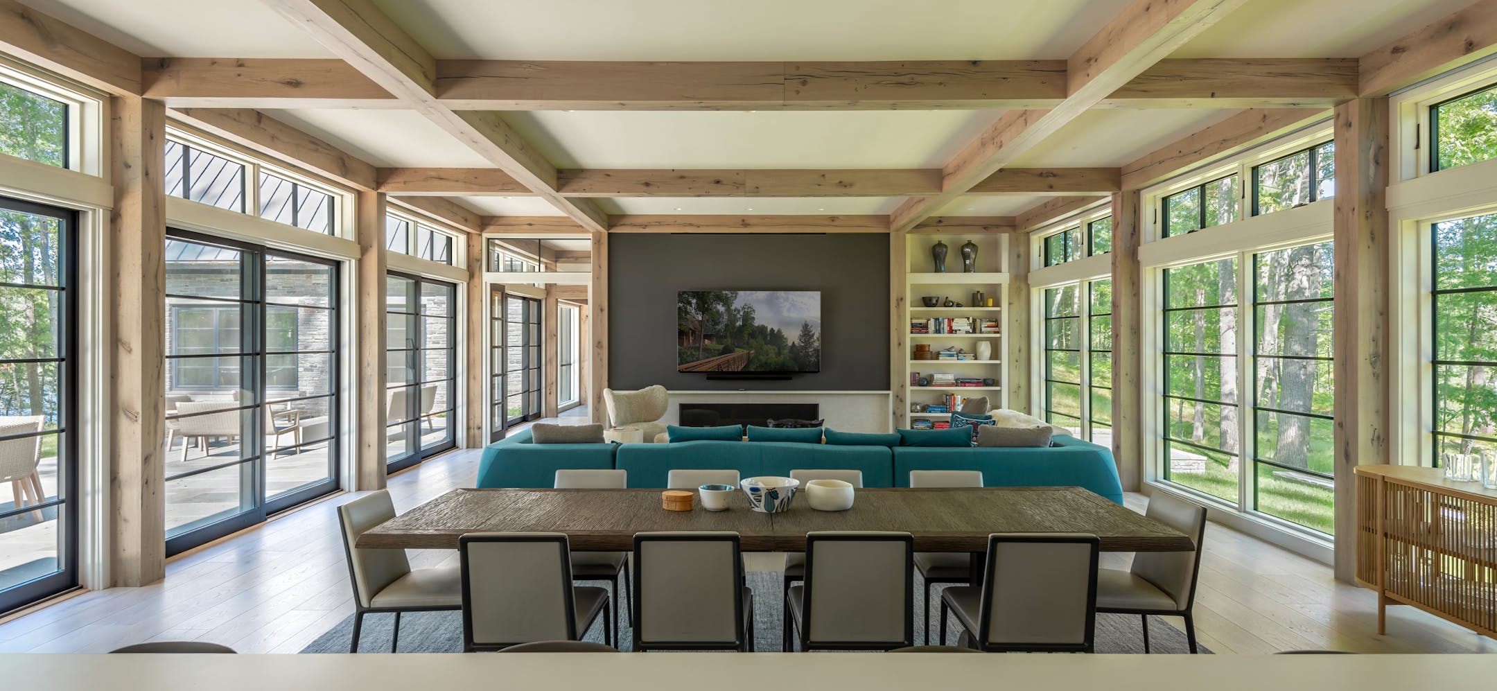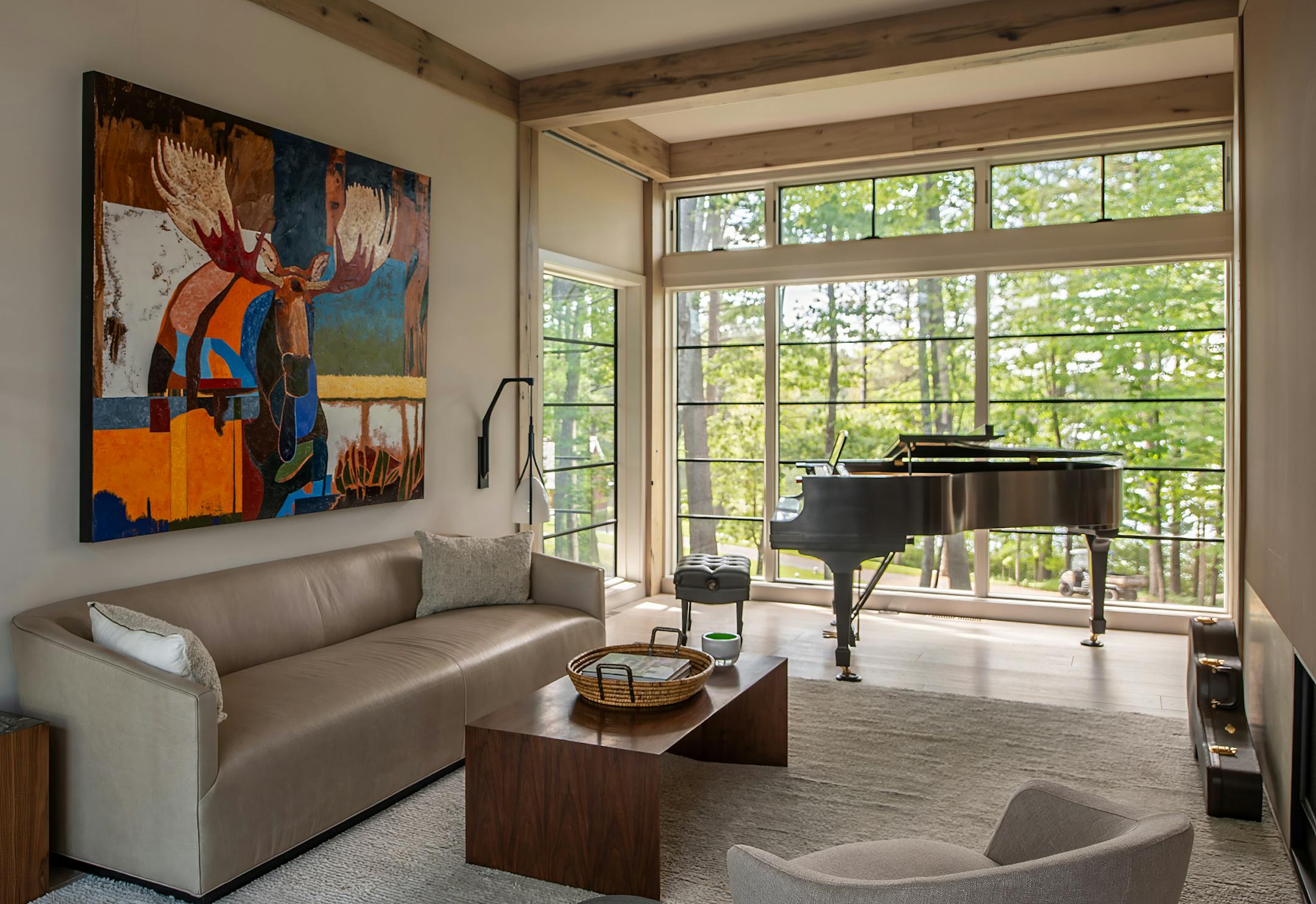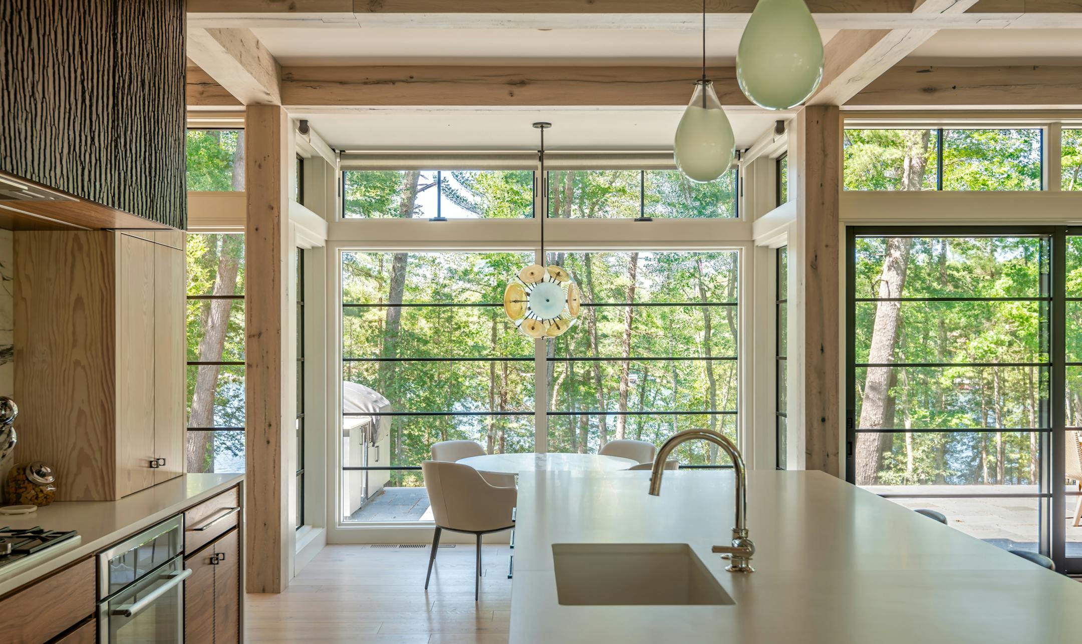 The Brules were close to retiring and envisioned a year-round home on the island where they could enjoy privacy and an active lifestyle (swimming, boating, cross-country skiing, snowshoeing). They also hoped the residence would serve as an enticement for their adult children, who had moved away for college and work.