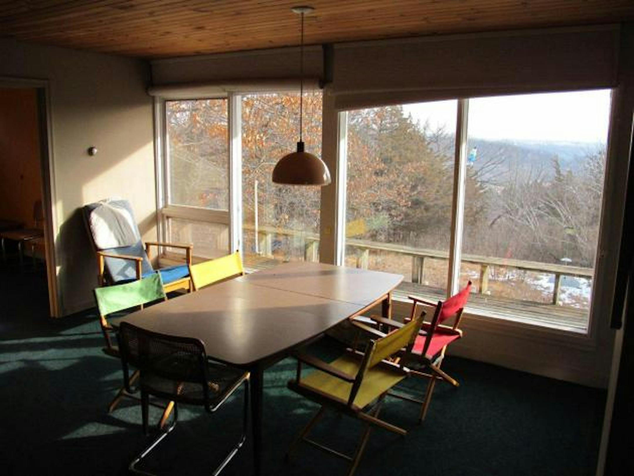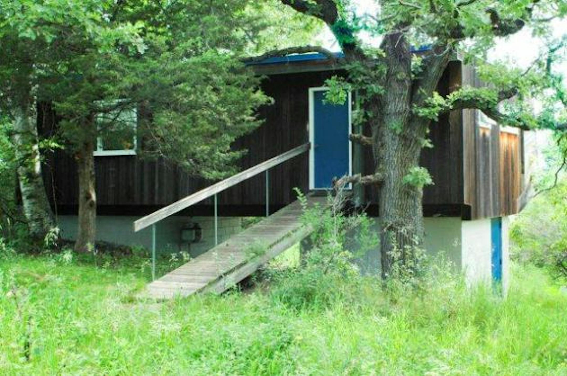 This two-room retreat is about 25 minutes from downtown St. Paul in Denmark Township. It's a modest little getaway and needs a bit of updating, but it makes a big architectural statement on a secluded lot with views of the St. Croix River Valley.