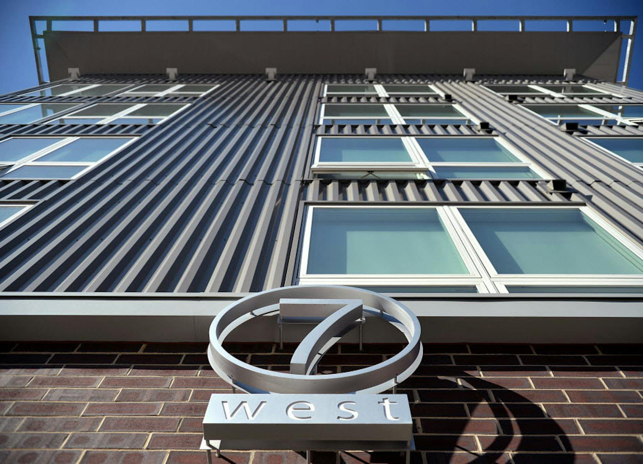 7west was built in 2014 and was the first multifamily building in the city to receive LEED Gold certification. It was built with the help of a feng shui master who consulted on certain design aspects, including the best position for the lobby at the busy intersection.