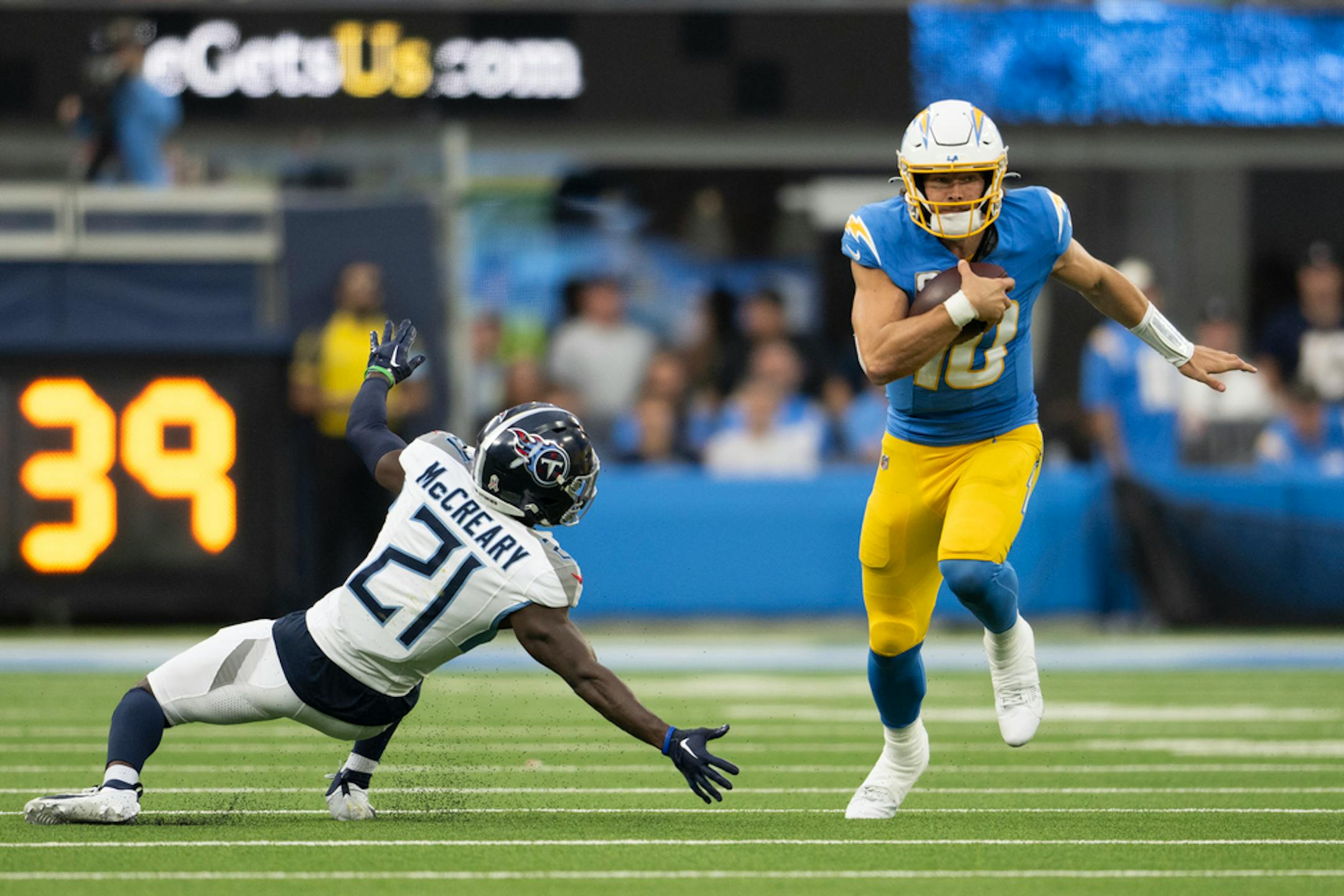 Herbert threw for a touchdown and ran for one, and the Chargers had seven sacks in their third straight victory, 27-17 over the Tennessee Titans on Sunday.