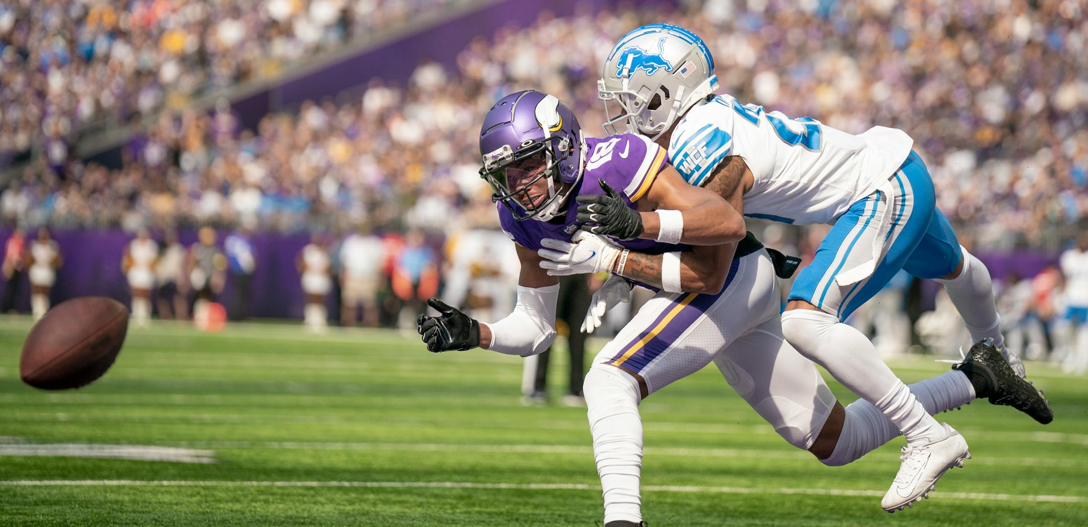 Many factors shrouded Jefferson on Sunday. His first target was batted at the line. His second was dropped. The Lions used cornerback Jeff Okudah, the No. 3 overall pick in 2020, to follow Jefferson and play physical coverage with frequent safety help over the top. Detroit bracketed him on an early third down. He was later surrounded by three Lions defenders in the end zone. O'Connell, who said he had "a lot of respect for how Justin handled" the unproductive day, talked with his star receiver through the game.