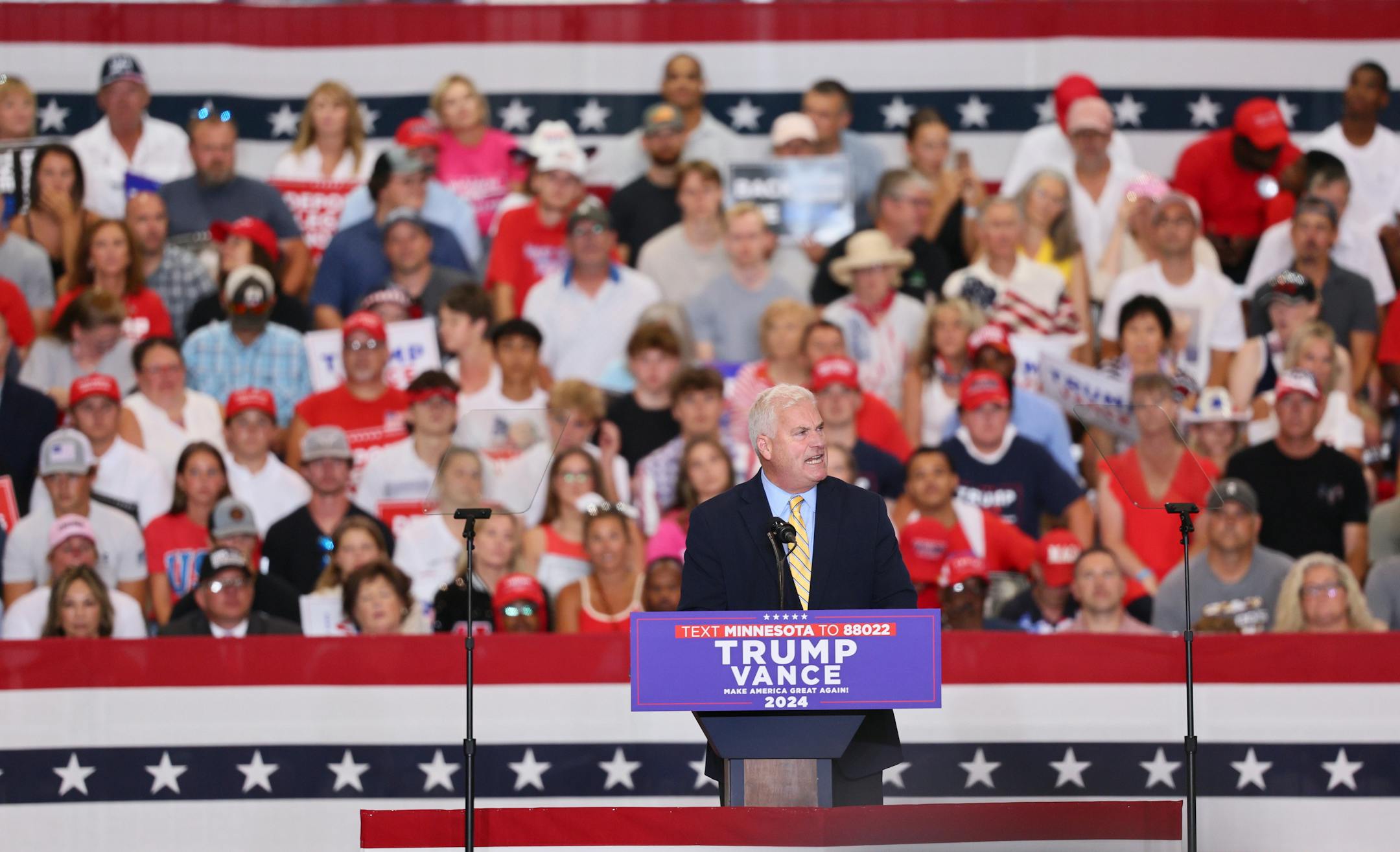 This message was quickly amplified by Fox News and the Donald Trump campaign, and at the rally in St. Cloud on Saturday Trump and Emmer repeated attacks on Harris for supporting the bail fund.