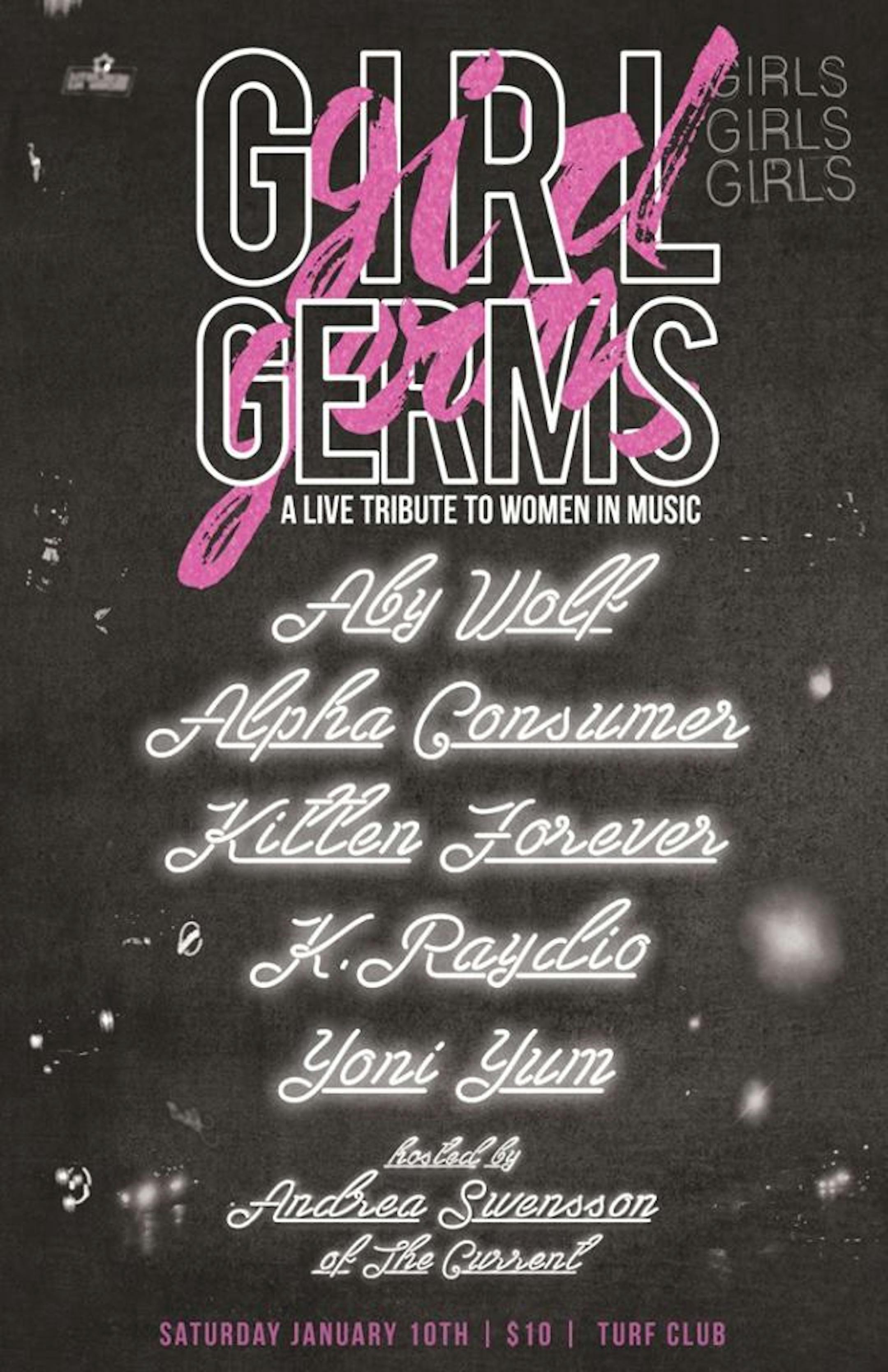 The first "Girl Germs Live Tribute to Women in Rock" at First Avenue in May saw such predictably delightful sets as Pink Mink doing Bikini Kill songs and pleasant surprises like Night Moves covering the Cranberries. Just a half-year later, organizers are bringing the concept over to the Turf Club for a Jan. 10 winter installment that promises a similar balance of obvious picks and "huh?" choices, a mix that's apparent right with the top two acts listed on the lineup: